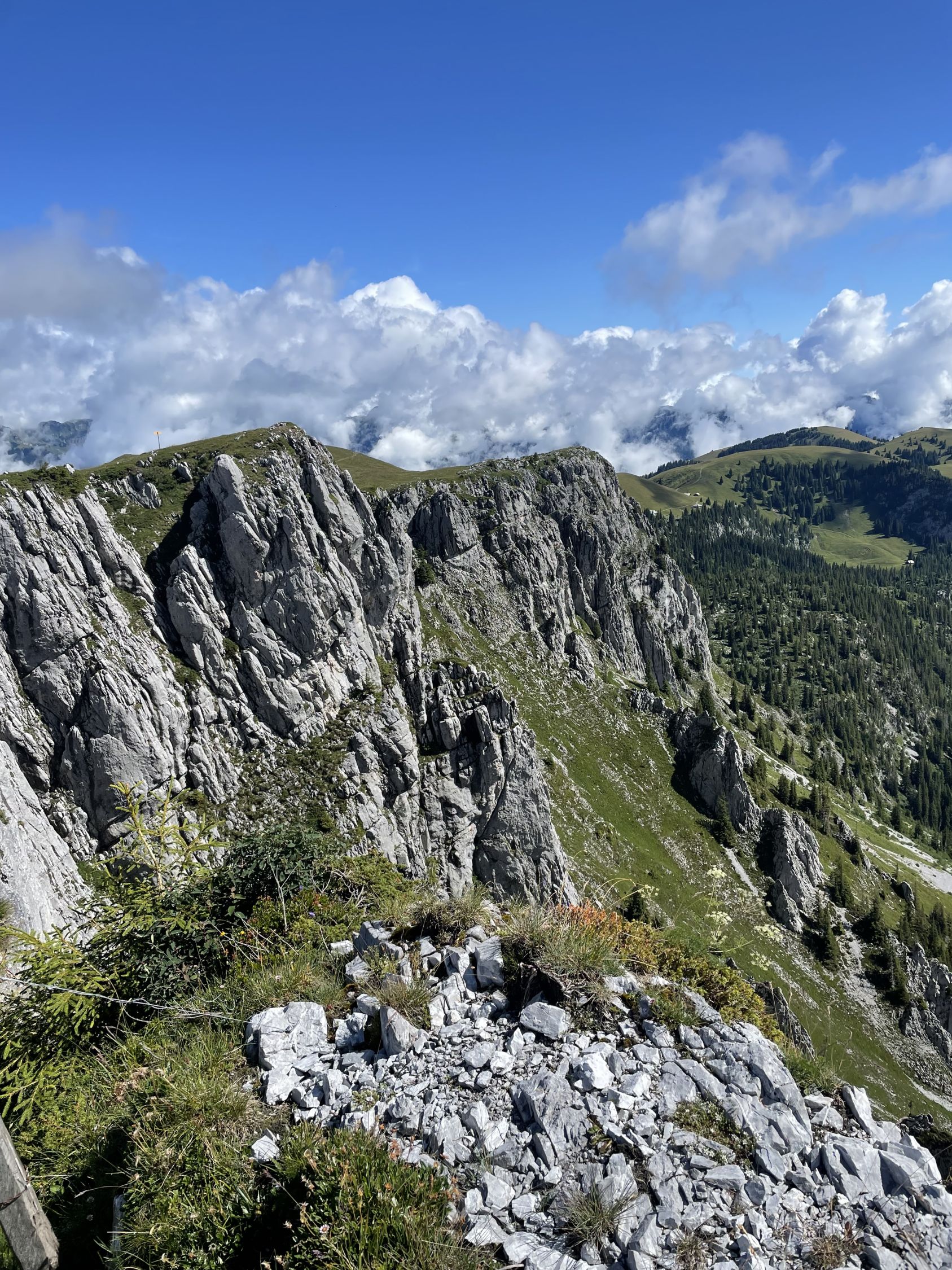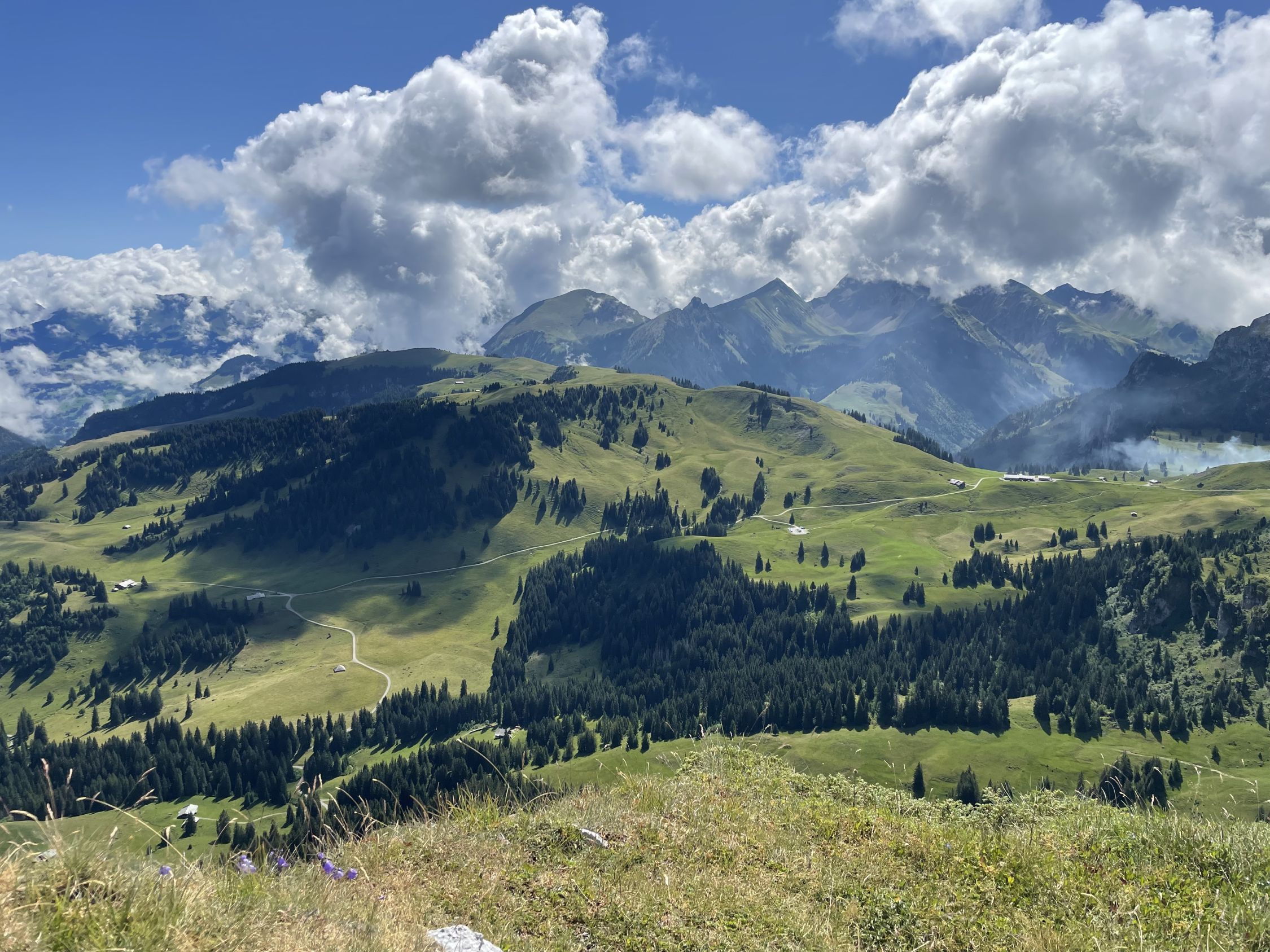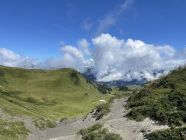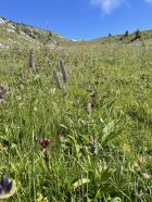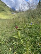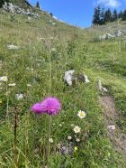Heute Nacht und am Morgen hat es noch geregnet, weshalb ich meine ursprünglich geplante Rundtour ums Bäderhorn verschob - da ist es besser, wenn trocken. Als es dann doch noch auftat und ich noch genügend Zeit für eine kurze, schöne Wanderung hatte, kam wieder mal das Niederhorn zum Zug. Natürlich holte ich mir tüchtig nasse Schuhe und Hosen, aber das trübte das Vergnügen keineswegs. Teilweise immer noch sehr schöne Flora, obwohl die Kühe mittlerweile oben sind.