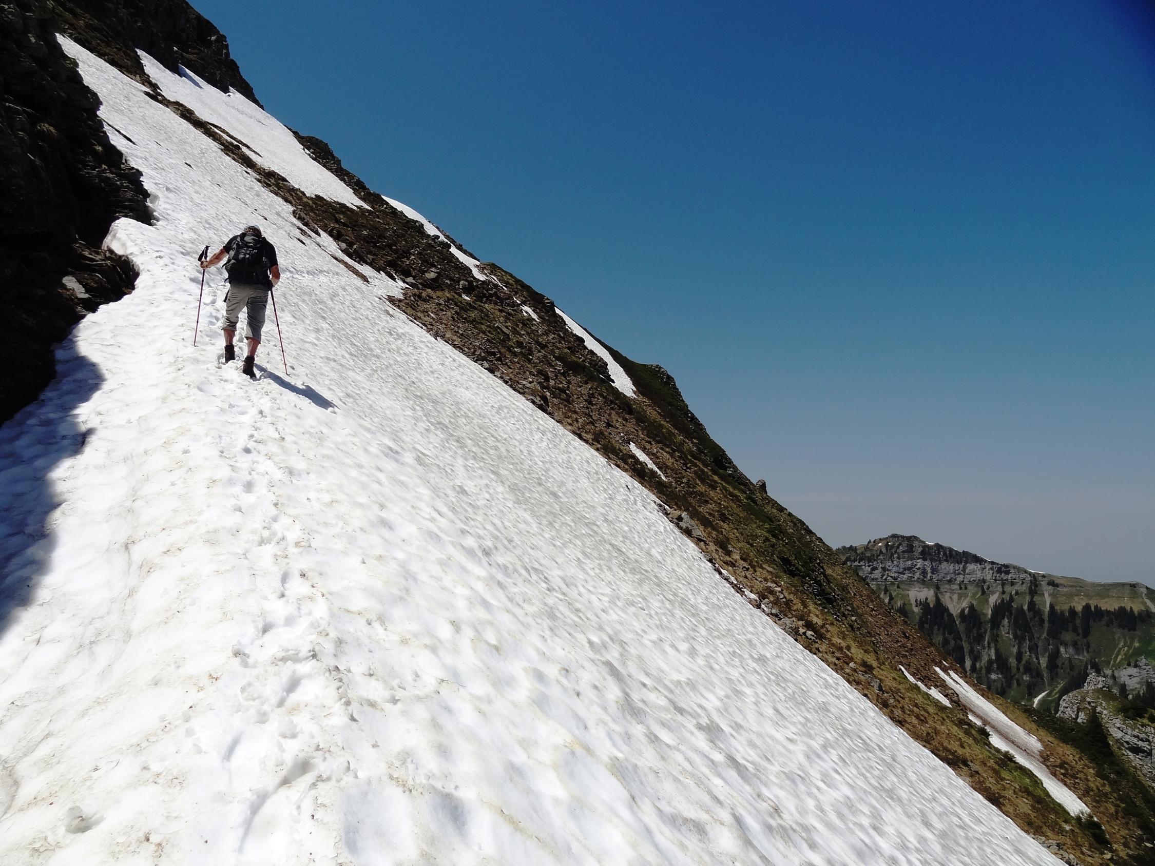 Bis auf die Schneefelder am Gipfelstock des Gemmenalphorns, trocken und gut.