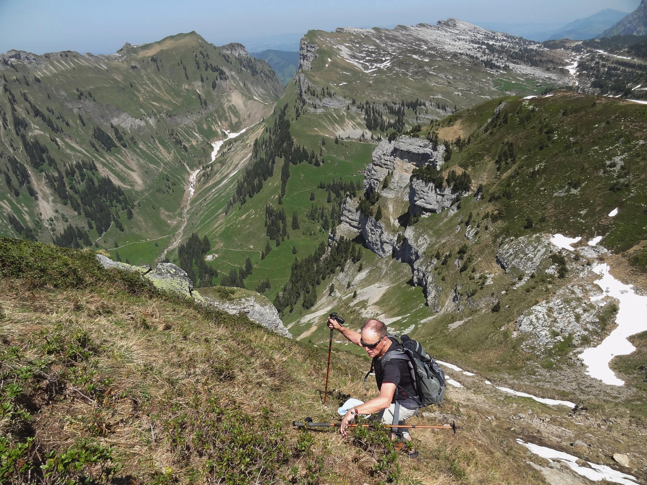 Links hat man die Berner Alpen mit dem Thunersee, rechts den Sigriswiler Grat mit dem Rothorn. Atemberaubende Tiefblicke ins Justistal. Will man Steinböcke sehen, sollte man früh unterwegs sein. Dank der guten Beschilderung kann man die Tour ohne Probleme bewältigen. Die Länge sollte nicht unterschätzt werden. Die Ausstiegs Möglichkeiten sind gut beschildert.