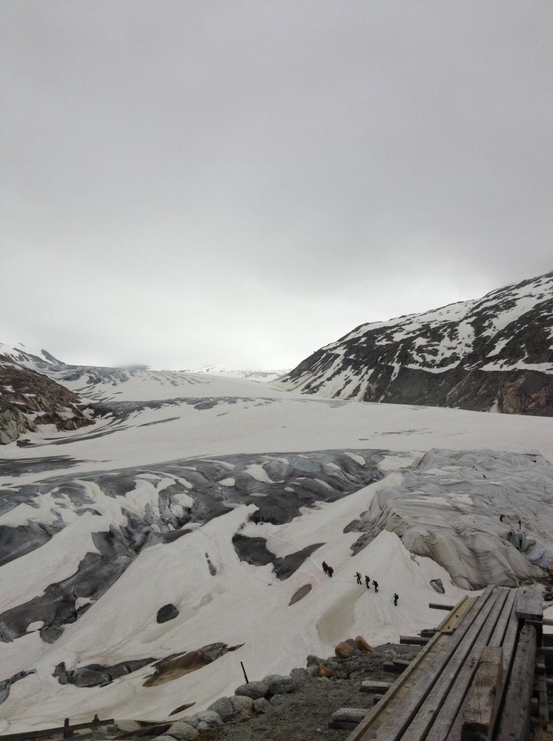 Viele Gletscherkurse auf /vor dem Rhonegletscher unterwegs, top ausgestattet, kam mir schon fast undereqipped vor. Wobei ich nach wie vor nicht weiss, was man mit 10 Exen und 0 Eisschrauben pro Person auf dem Gletscher vorhat?;-)