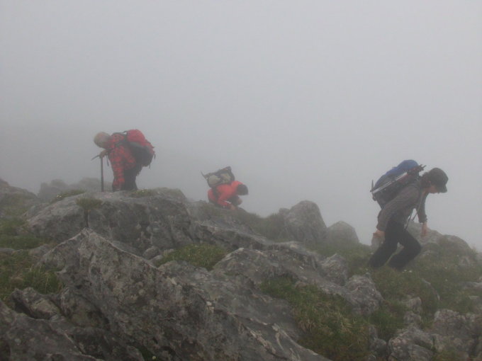Wetter anfangs bedeckt, nebel, später einsetz. Nieselregen...Temperatur auf 2000m ca 6°C. West bis NW-Wind