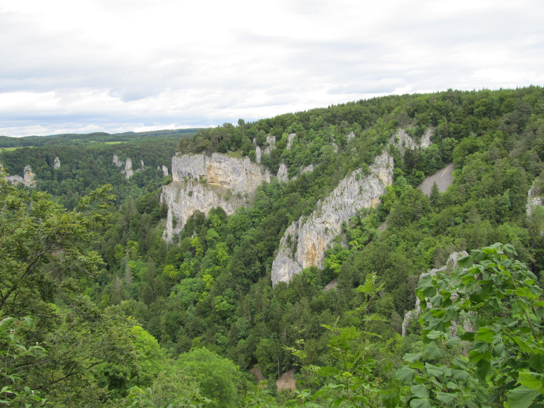 Angesichts der Wetterverhältnissen in den Alpen waren wir über das trockene Wetter und einen Hauch von Bergwandern in dem von den Kalkfelsen gesäumten Donautal froh. Schöne Aussicht vom Bandfelsen auf das Donautal