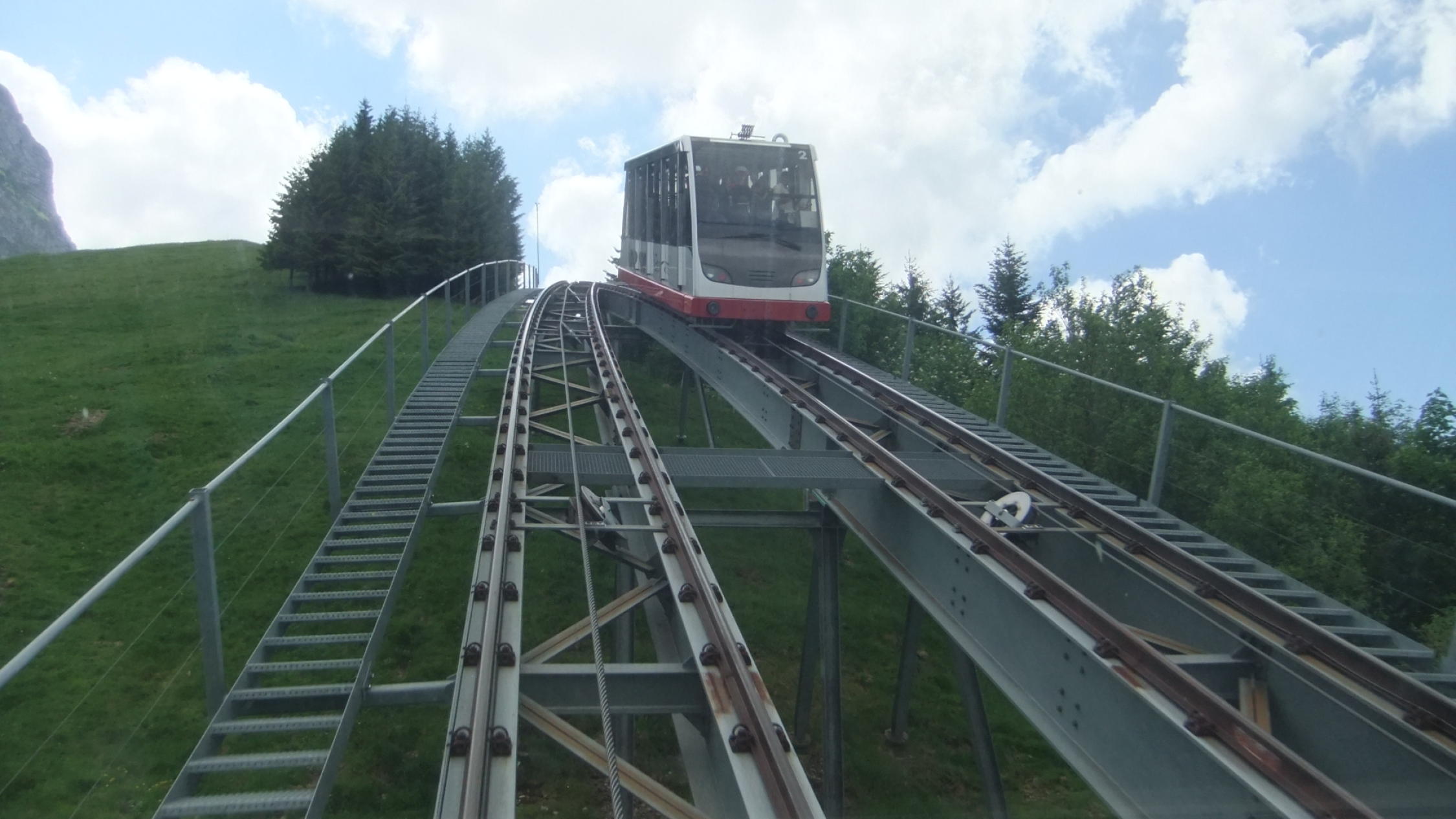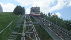 Auffahrt mit der Schienen-Seilbahn um 16:15 Uhr nach Plan Francey.