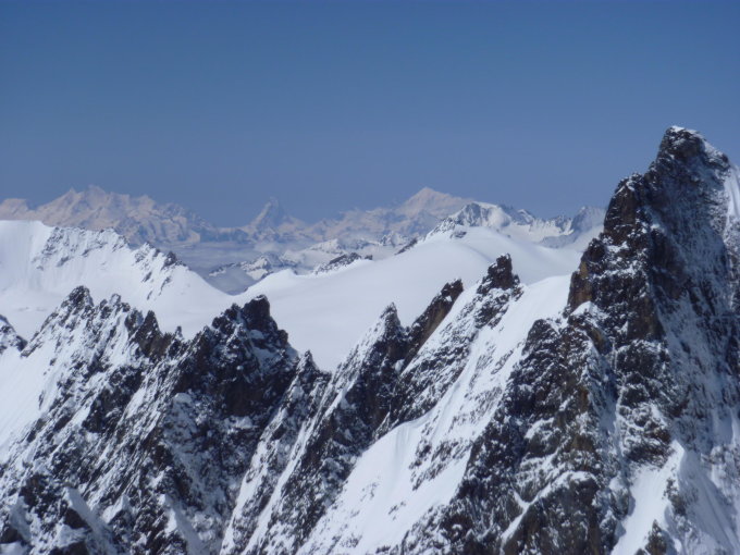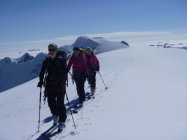 Unglaublich für Ende Juni. Das schlechte Wetter am Samstag brachte kältere Temperaturen und einen Hauch Neuschnee ab ca 2700 m. Gletscher immer noch recht gut eingeschneit, nur wenige offene Spalten. Im Aufstieg tragend bis hart, aber ohne Harscheisen machbar. Gipfel mild und fast windstill mit traumhaften Panorama. Viel Sonne und Blick auf dicke Cumulus die uns nicht betrafen.