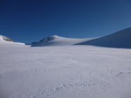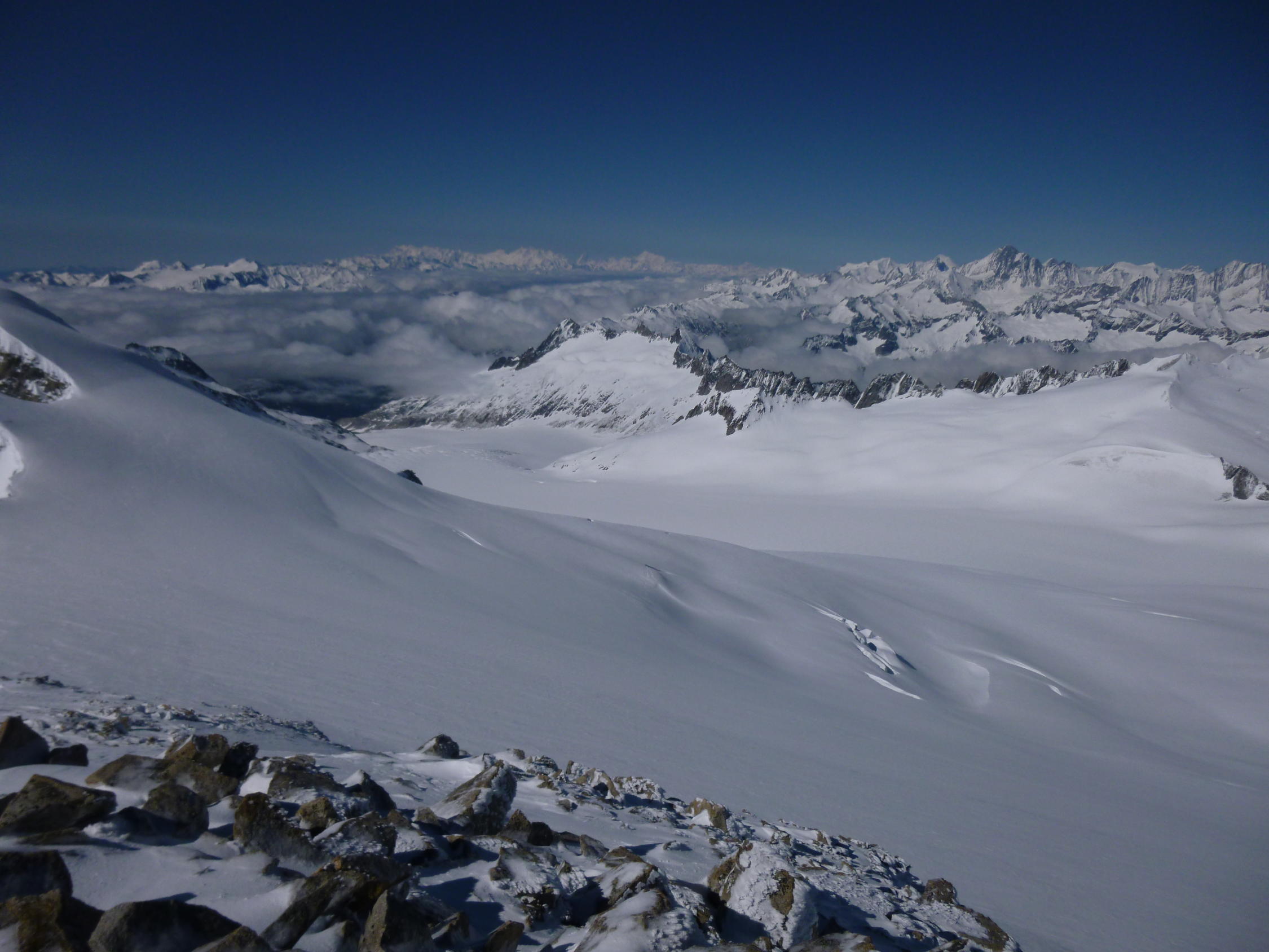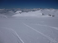 Verhältnisse tip top, gefrorener Neuschnee, z.T. leider etwas Deckel. Am Gipfel im Windschatten sehr angenehm zum Verweilen.