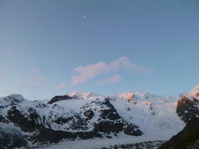 Seilschaften am Piz Morteratsch unterwegs. Vom Val Roseg, Tschiervahütte her.
