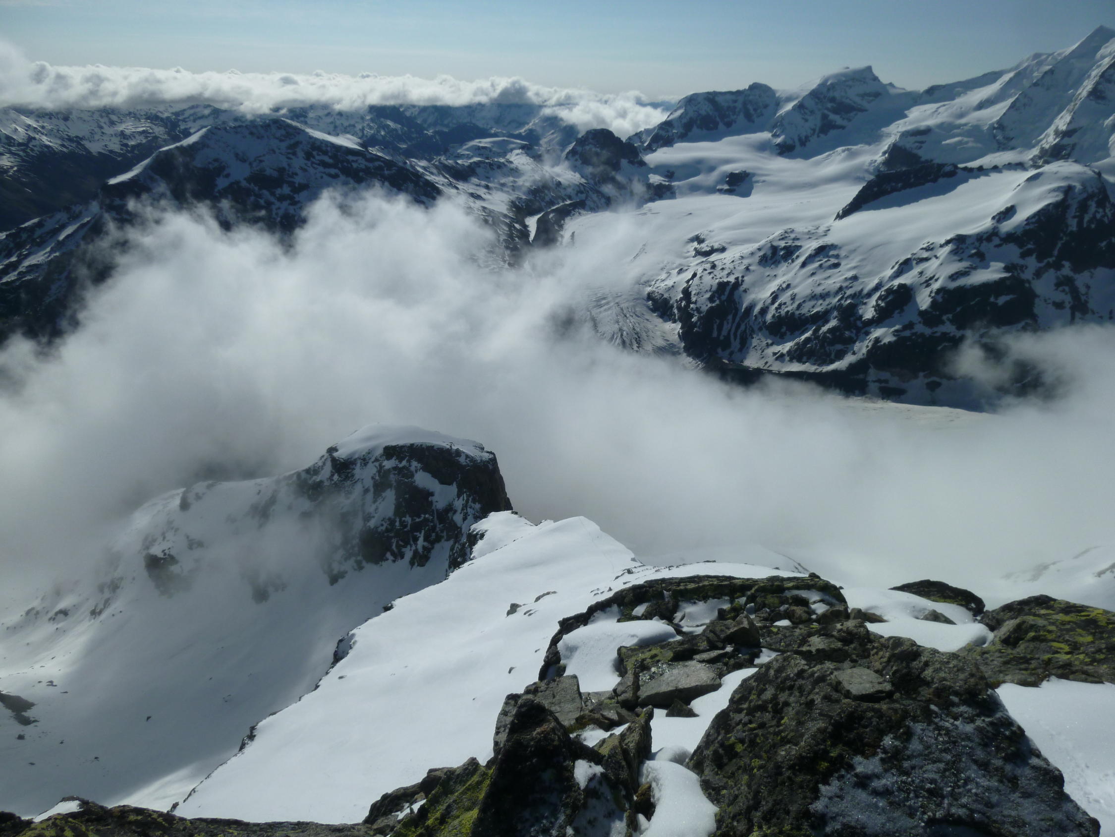 Geplant war, über die Crasta da Boval bis zum Piz Misaun weiterzugehen und dort über die Ostflanke abzusteigen. Anbetracht der Verhältnisse haben wir uns aber beim Piz Boval für die Umkehr entschieden.