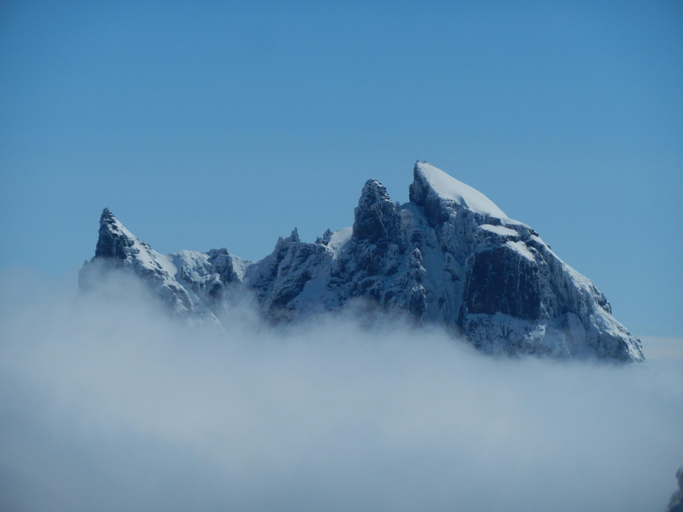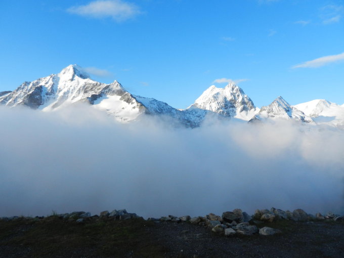 Sehr stimmungsvolle Wolkenbilder bei besten Bedingungen inkl. des Neuschnees von gestern. Besten Dank unseren beiden Führern (natuerlich auch für die kleine diretissma, definitiv das Salz an der Suppe der ganzen Tour). Very well done.