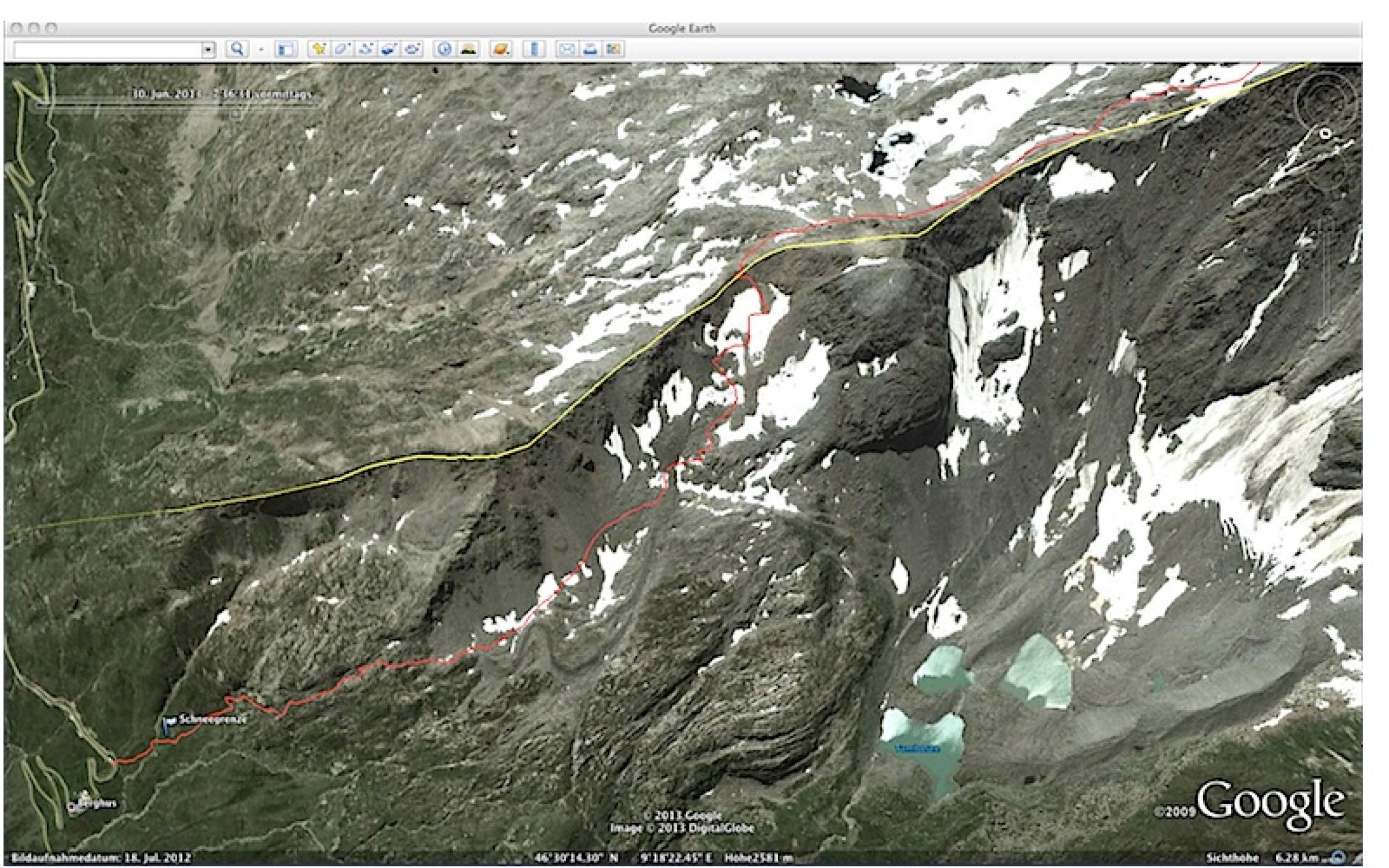 Noch durchgehend Schnee nach 4 Min. Skitragen ab Passstrasse über das Joch beim Lattenhorn bis zum Skidepot unter der Gipfelpyramide --- leider auch durchgehend Nebel und somit den Weg nur "Garmin sei Dank" gefunden. Die Schneedecke ist wunderbar gesetzt und wunderbar zu fahren.