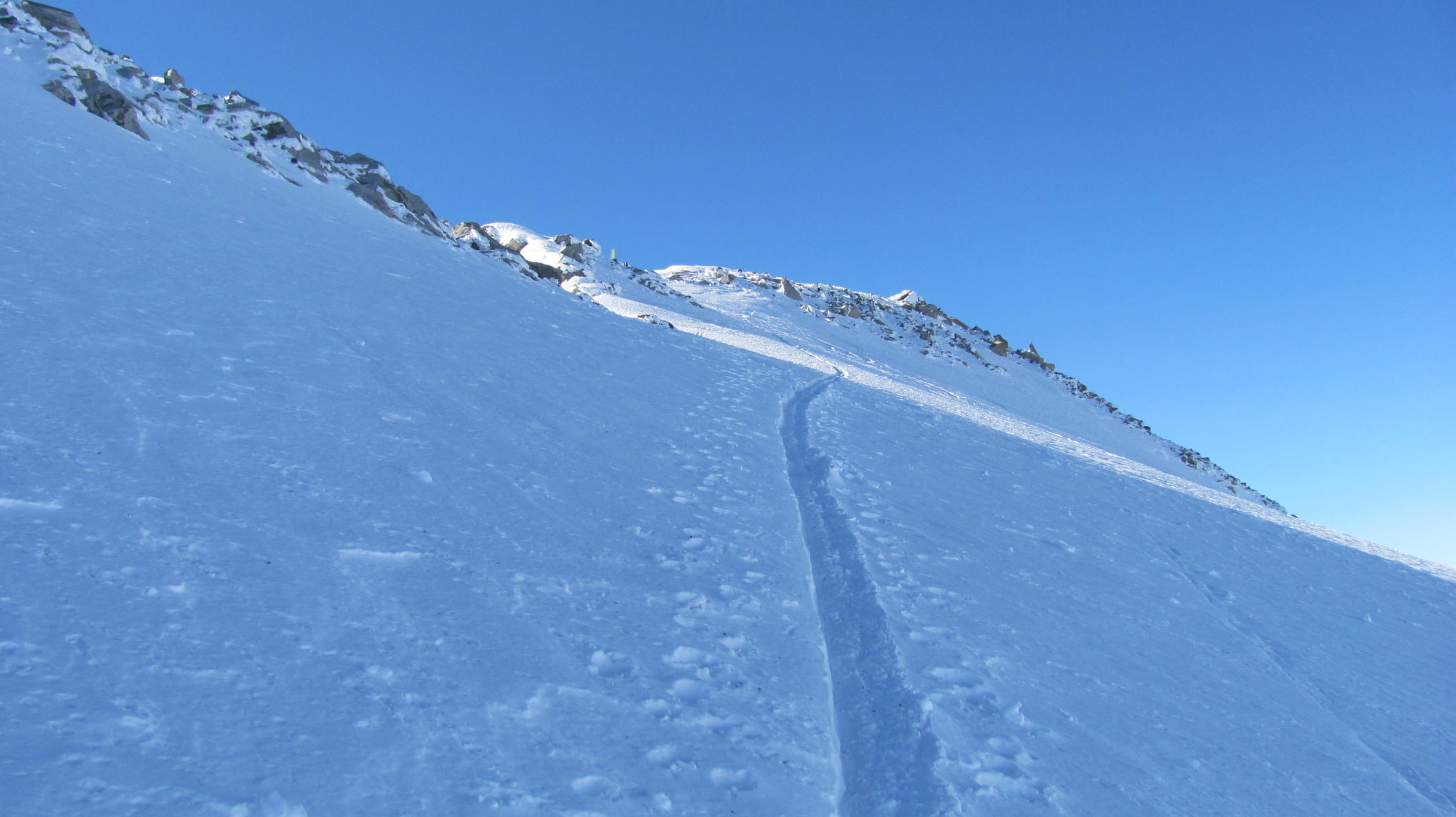 Ich hätte eigentlich nach dem Dammastock noch den Galestock gemacht wenn nicht bei meiner Fritschi Bindung Eagle 10 eine Schraubmutter beim Gelenkstift verloren gegangen wäre ich hatte Gück dass der Stift gleich bei Einstieg vor der untersten Steilstufe rausflog.