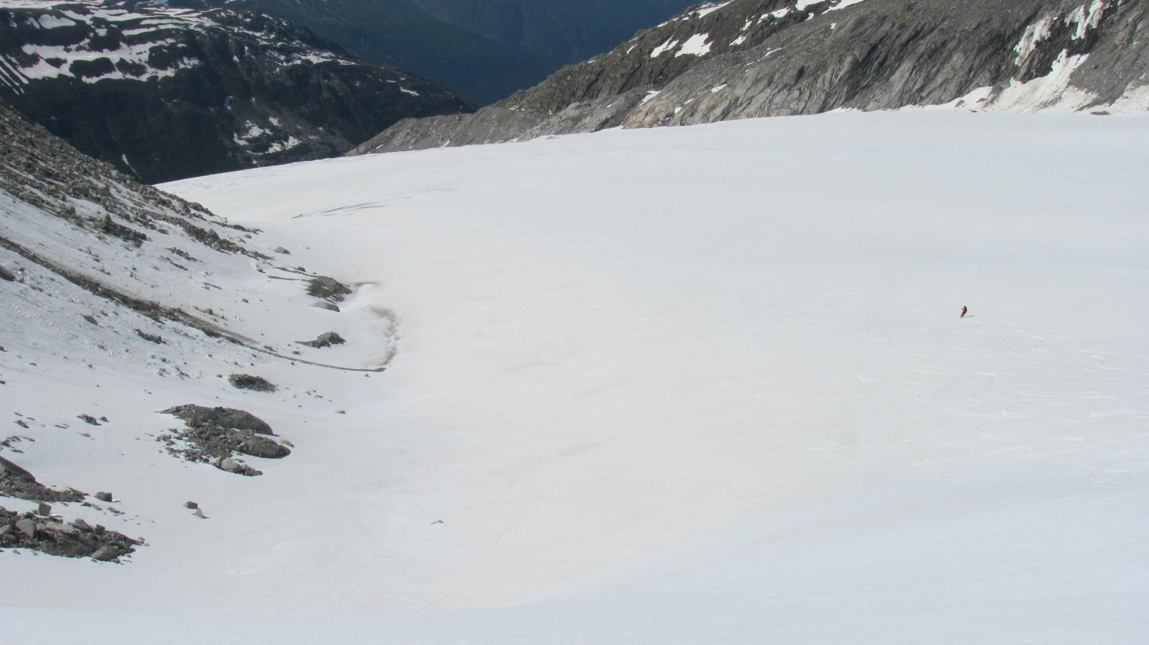 Wird sicher diese Woche noch machbar sein wenn im untersten gletscherbereich nicht der ganze Schnee wegschmilzt und blankes Eis ist.