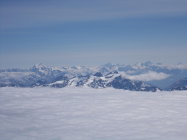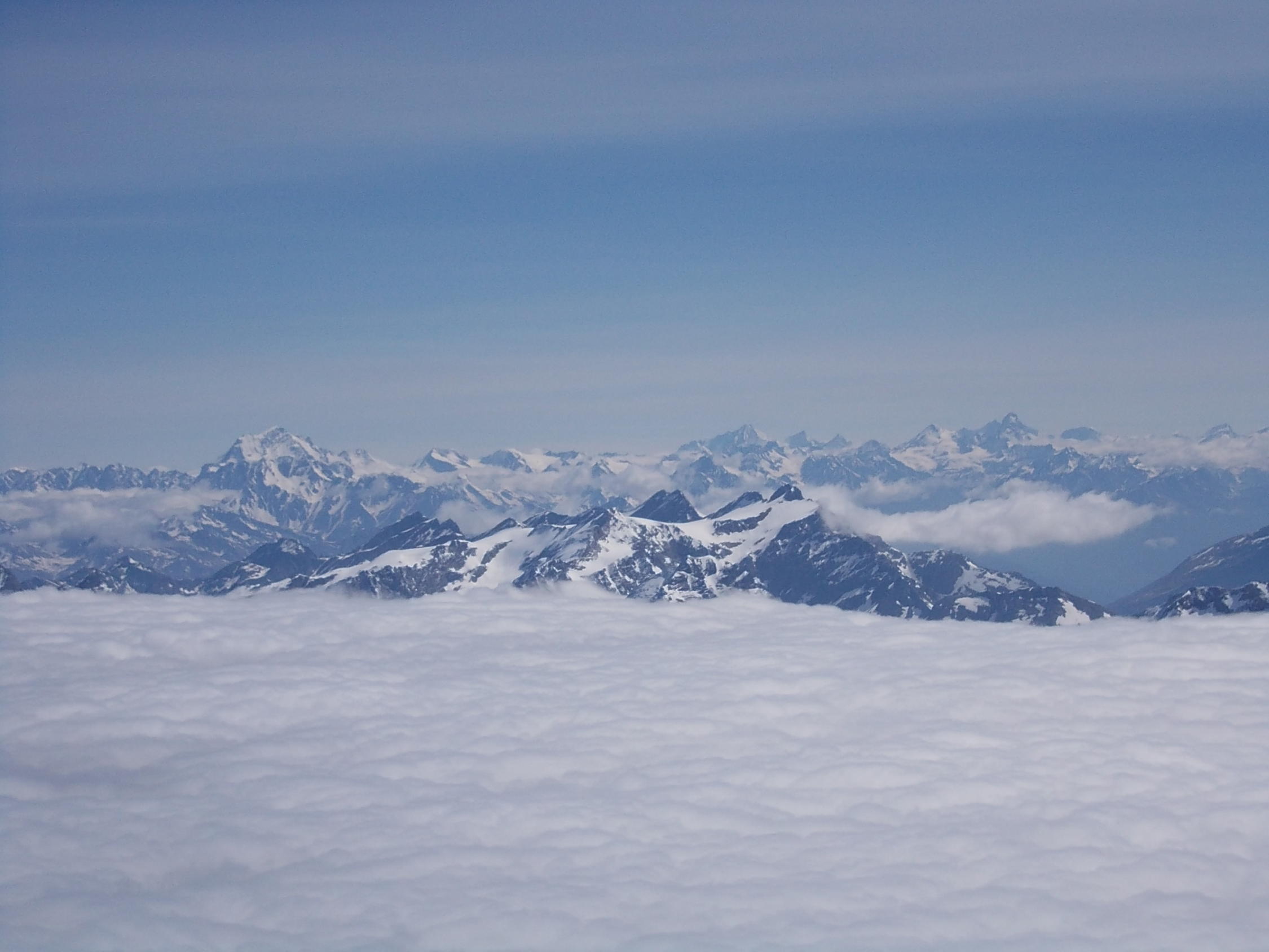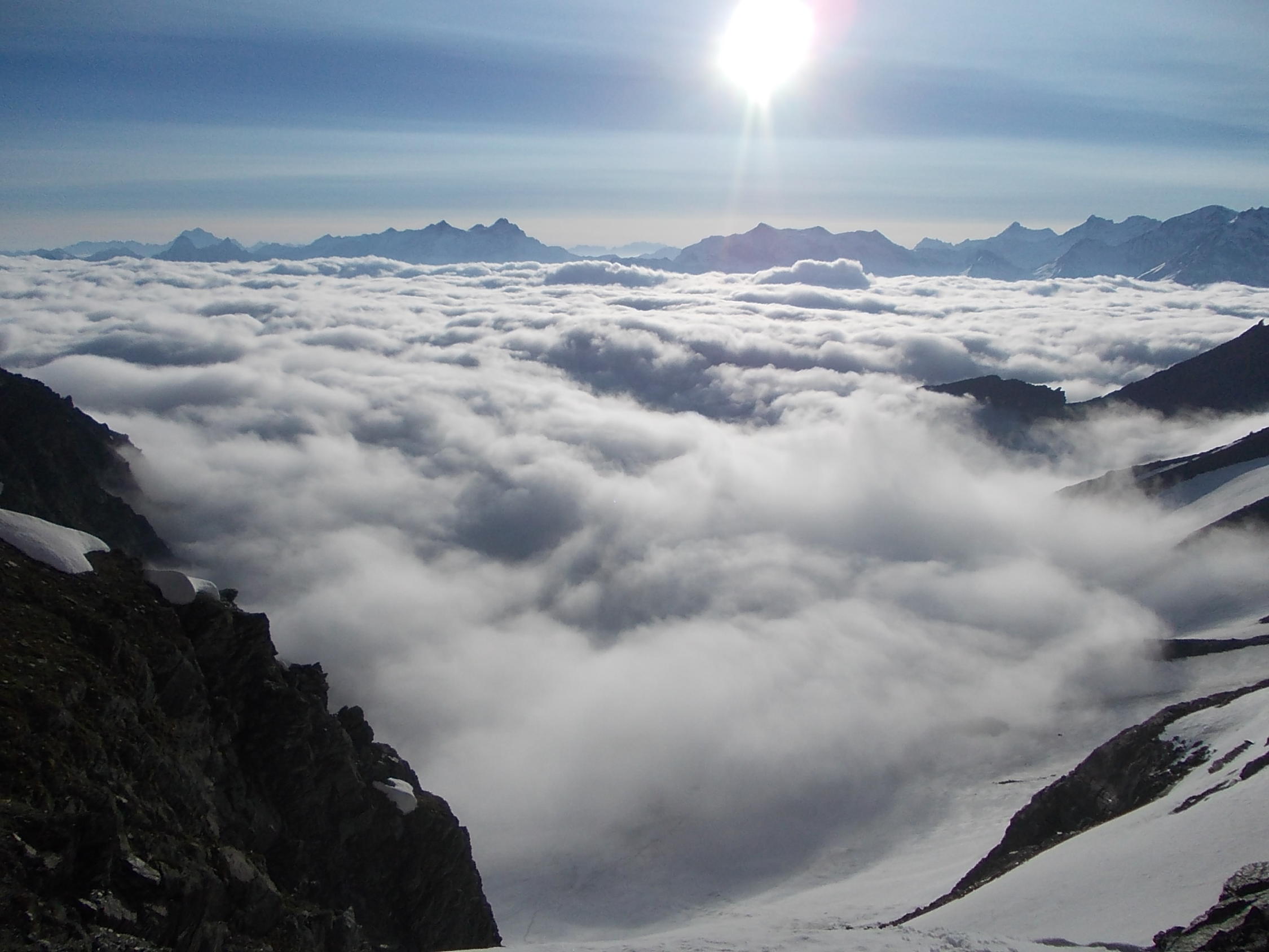Fantastische Inversionslage - alle großen Gipfel überragten die Watte, die sich über die Täler gelegt hatte. Südansicht Mont Blanc, Gran Paradiso, Dauphinée, Monviso - einfach großartig!