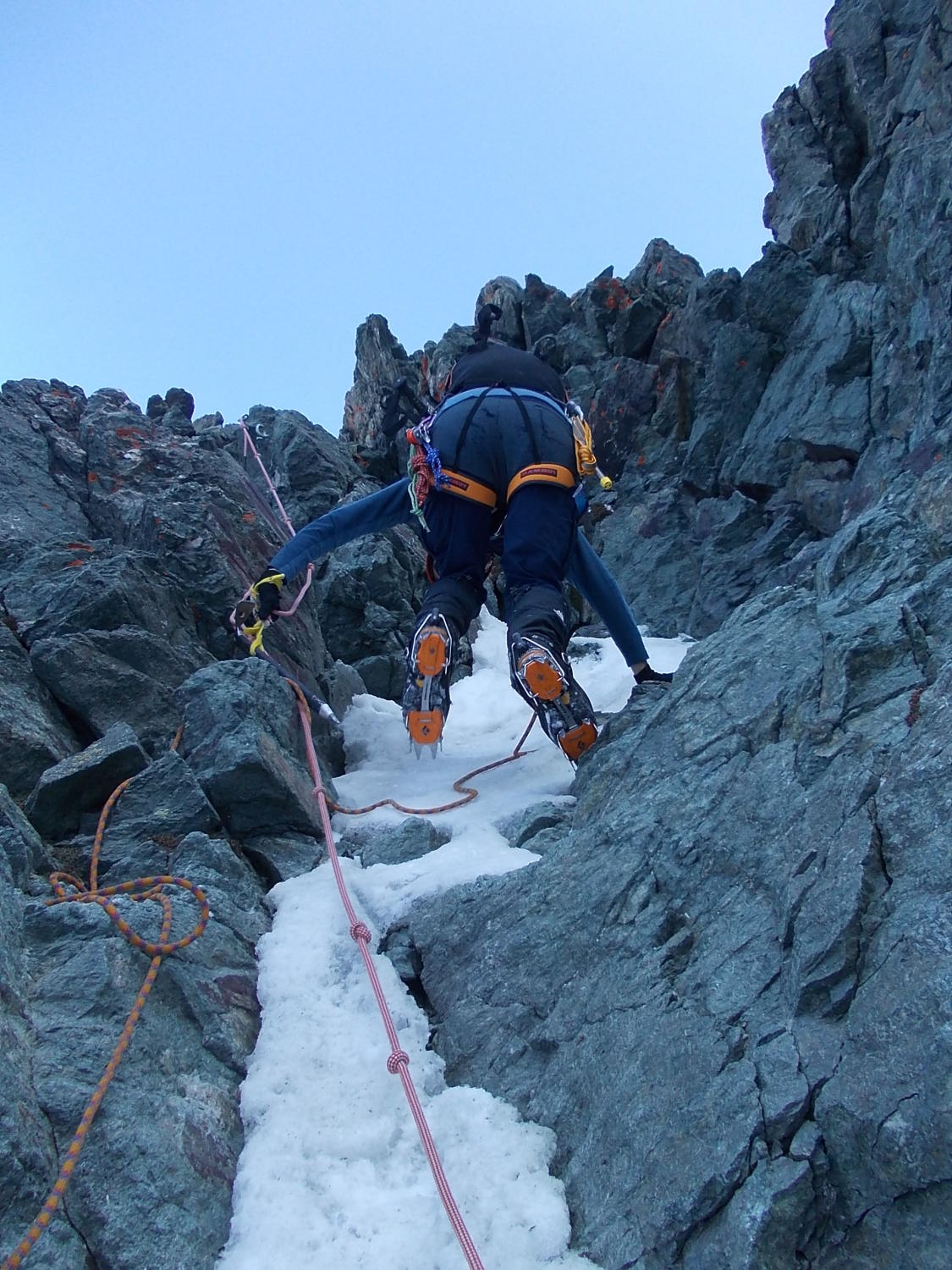 Außer uns waren noch zwei Skitourler-Seilschaften unterwegs. Derzeit ist die Tour auch als Skitour noch sehr gut machbar.
