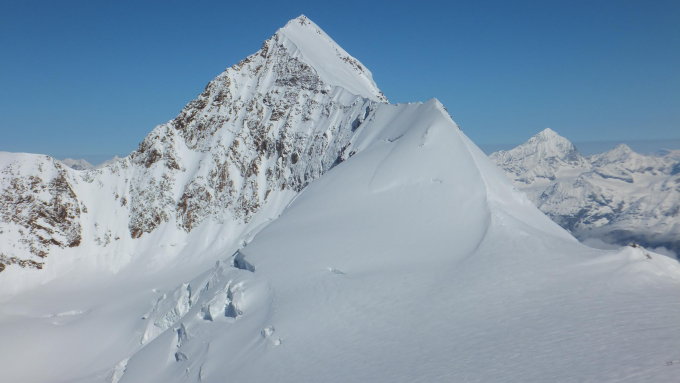 Wir wollten noch weiter zur Dufourspitze. Auf dem Grat zum Grenzgipfel waren die Verhältnisse nicht so gut. Soweit bekannt haben alle Seilschaften umgedreht.