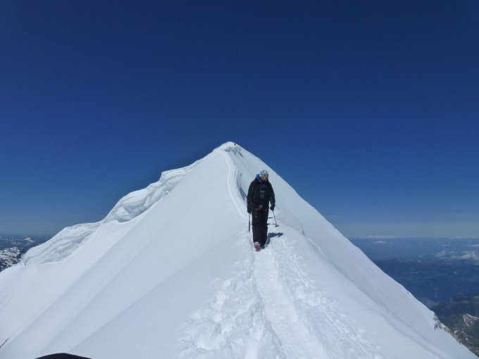 Es liegt noch sehr viel Schnee. Von Anfang an mit Steigeisen. Ausgezeichnete Verhältnisse.