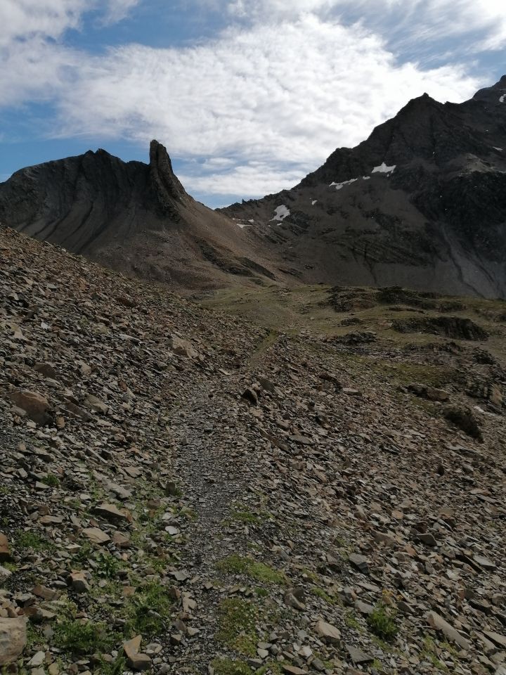 Im Schlussaufstieg zum Hausstock hat es wieder einen guten Pfad, mit etwas Aufmerksamkeit kaum zu verfehlen, bei den roten Felsen am besten 30m horizontal nach links gehen. Vom Kalktrittli bis zum Hausstock hatte ich 5h15 reine Gehzeit, die SAC Zeiten zur Muttseehütte und zum Ruchi halte ich für übertrieben.