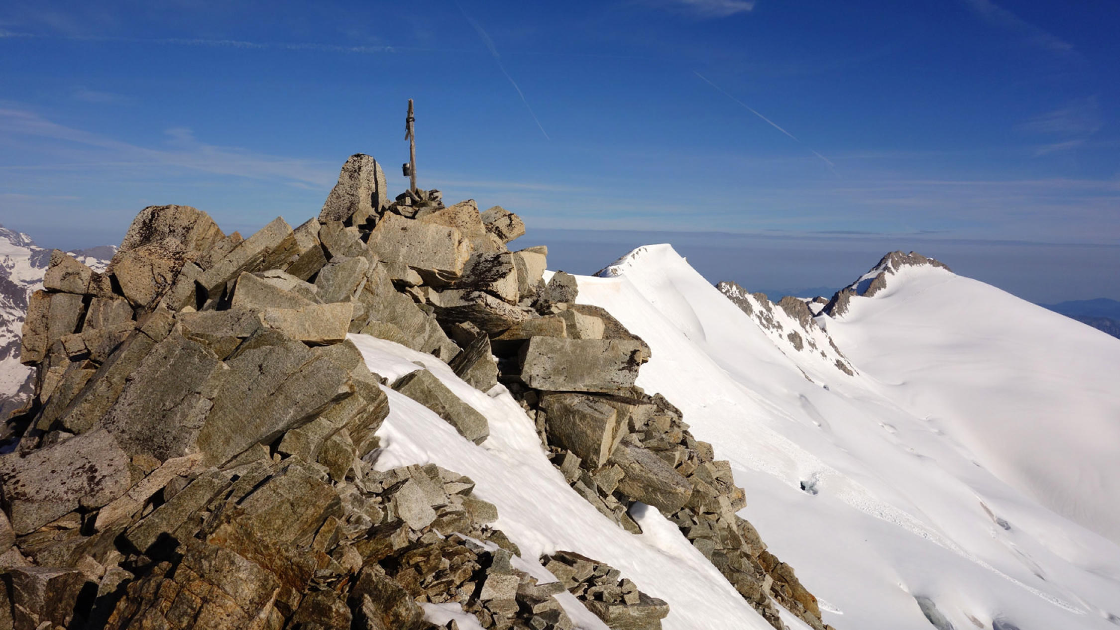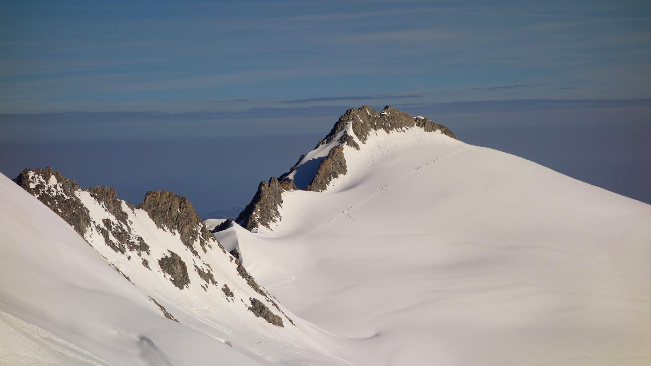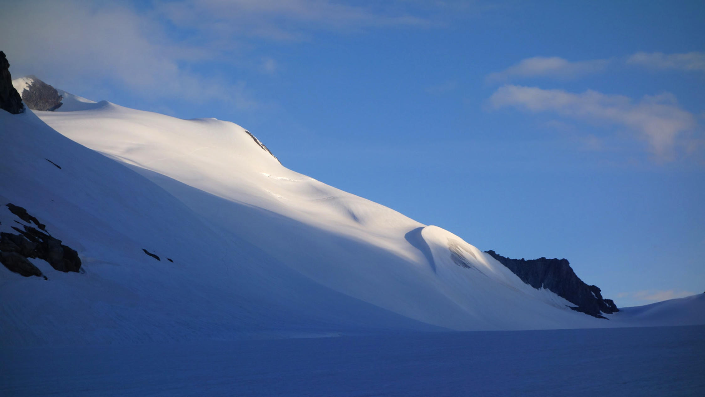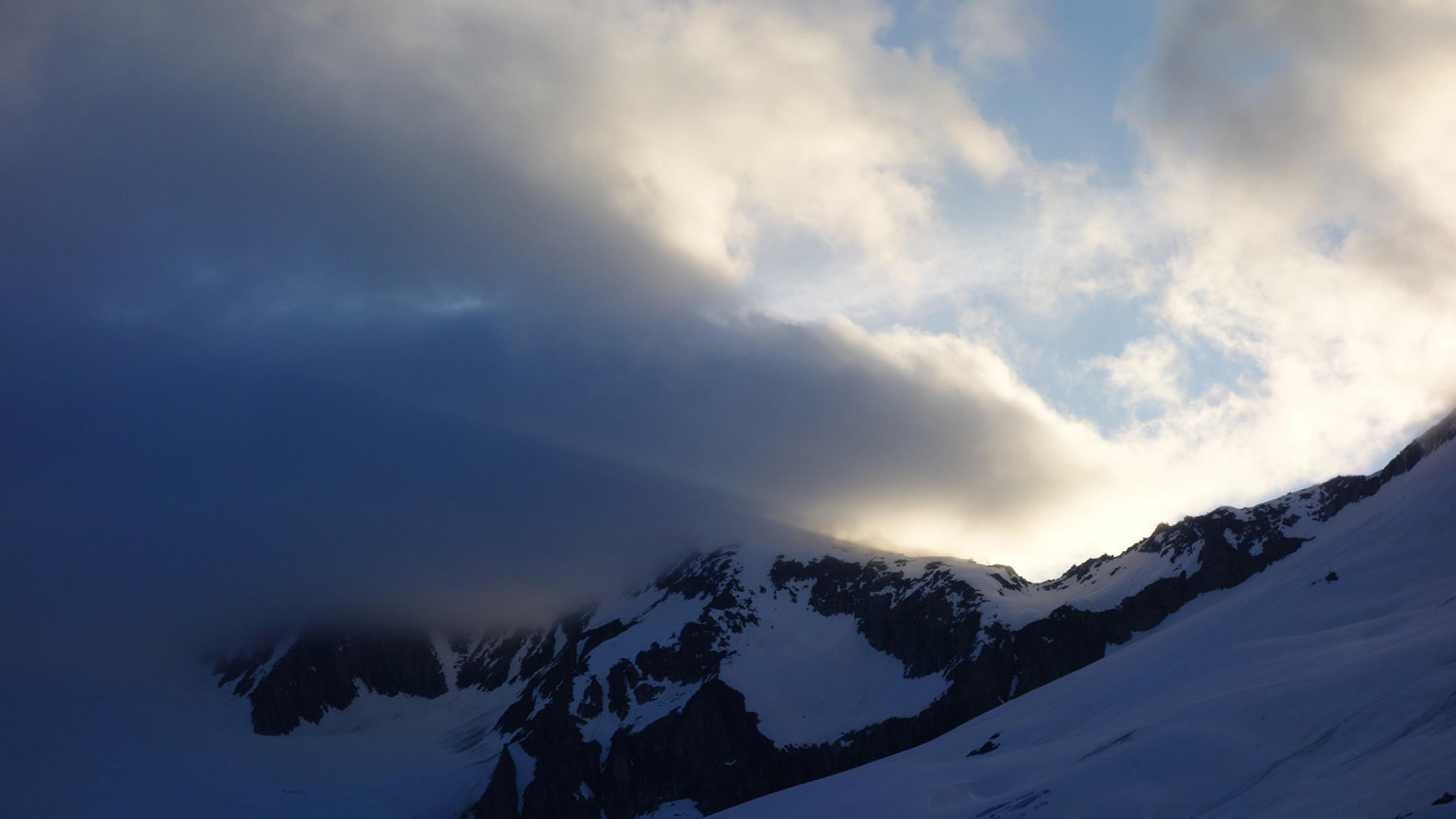 Heute war das Timing perfekt! Los um 5.30 Uhr bei Belvédère, unten schmilzt der Schnee rasant, viele apere Stellen auf dem Gletscher bis ca. 2500m, danach superschön!
