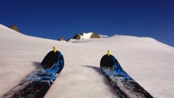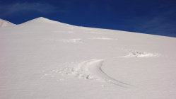 Die Abfahrt vom windstillen, sonnigen Gipfel um 8.45 Uhr war genau richtig nach dieser Regennacht. Der Schnee war wie Butter, von oben bis unten. Ok, unten wie zerlaufene Butter, aber immerhin.