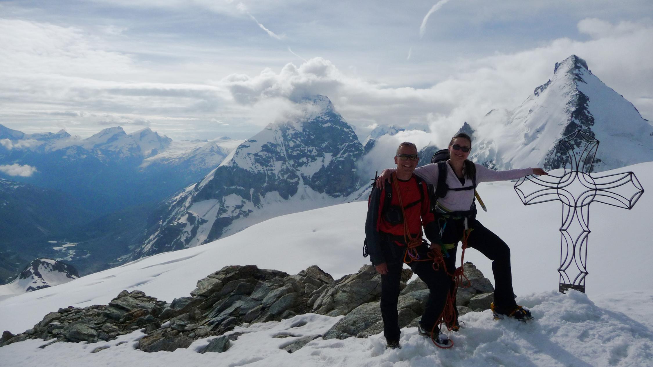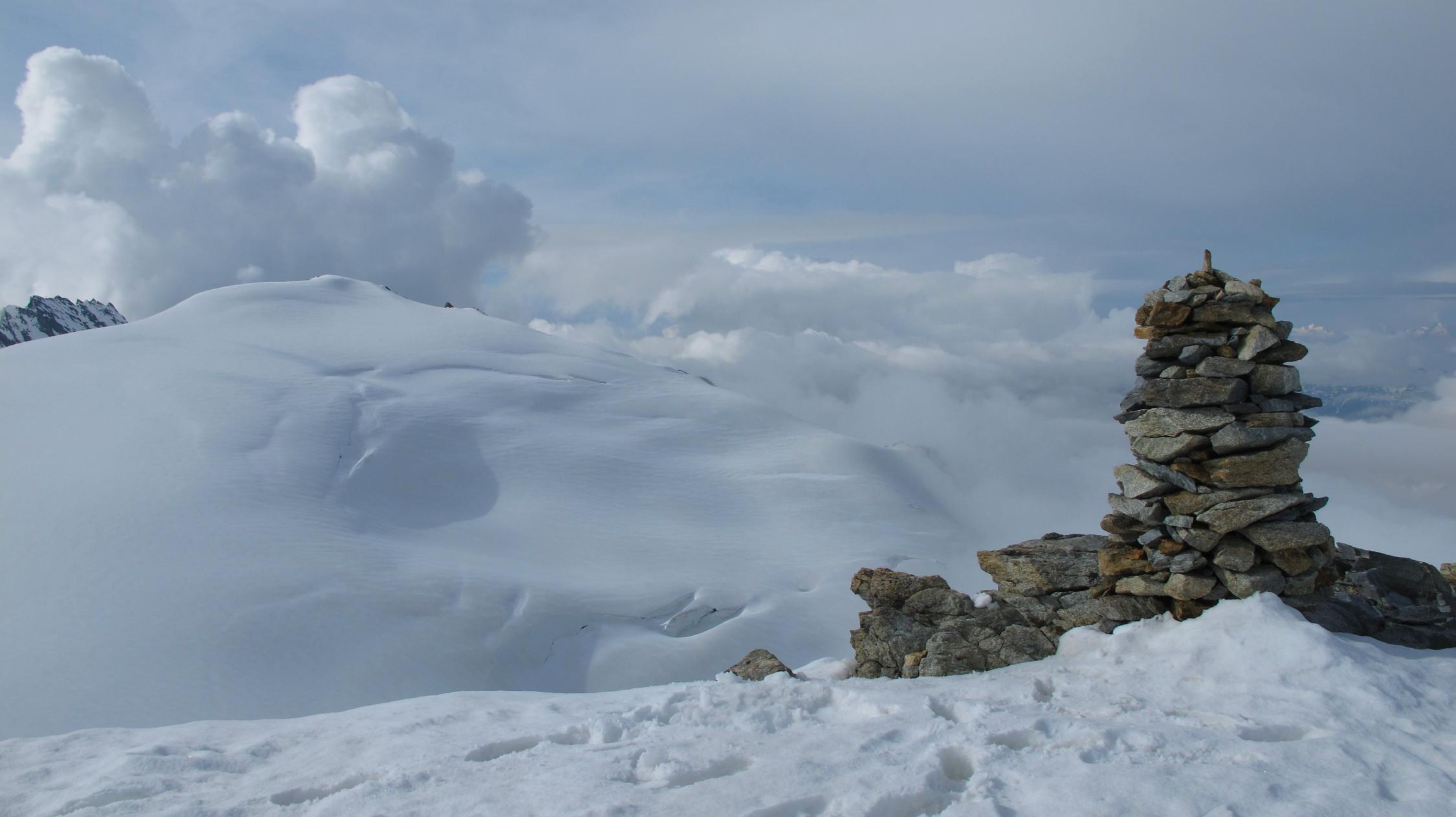 In der Nacht bewölkt und deshalb der Firn nicht gefroren. Man konnte ohne Steigeisen im weichen Schnee bis zum Gipfel gehen.