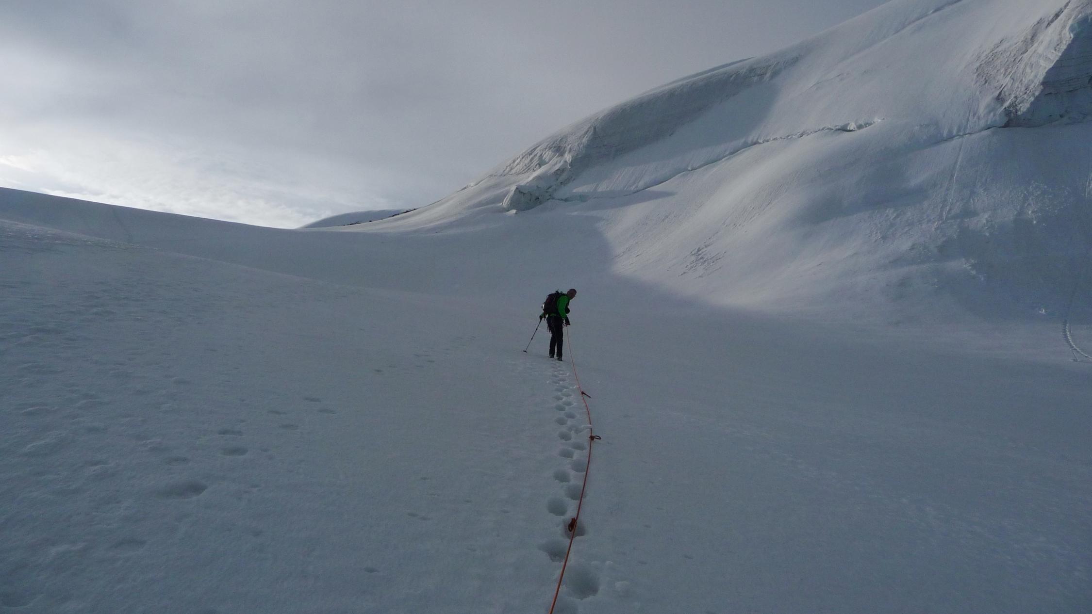 Tête de Valpelline ist nicht gespurt. Der Weiterweg zur Schönbielhütte ist gespurt.