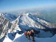 Nach Ostgrat und Dome du Gouter Abstieg zur Gouterhütte und am nächsten Tag zum Mont Blanc (s. Eintrag dort).