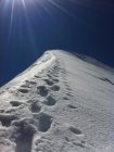 Beim Abstieg am Normalweg vom Ostgipfel liegt das Blankeis stellenweise nur noch wenig unter dem Firn.