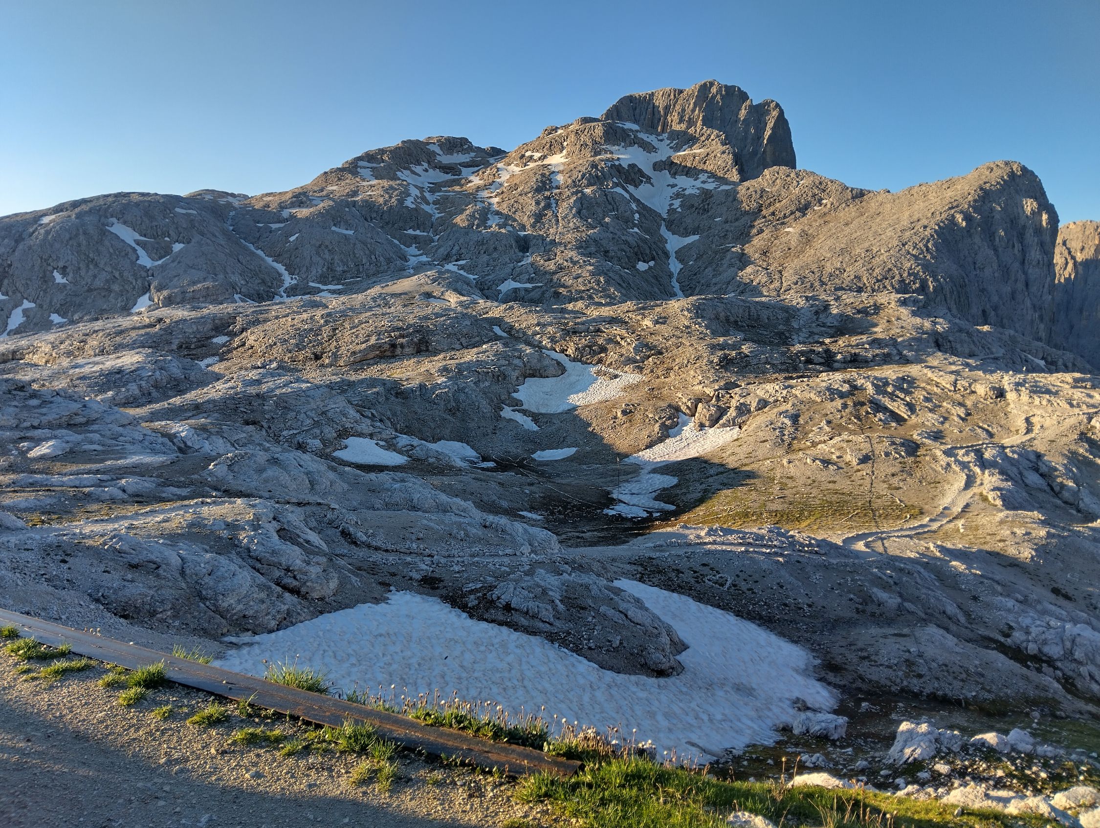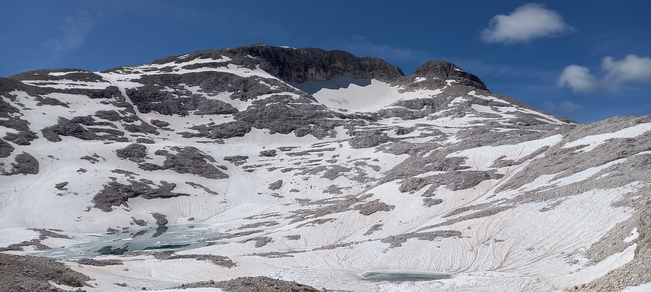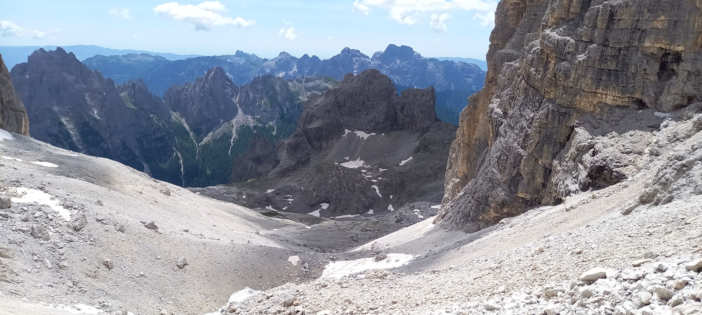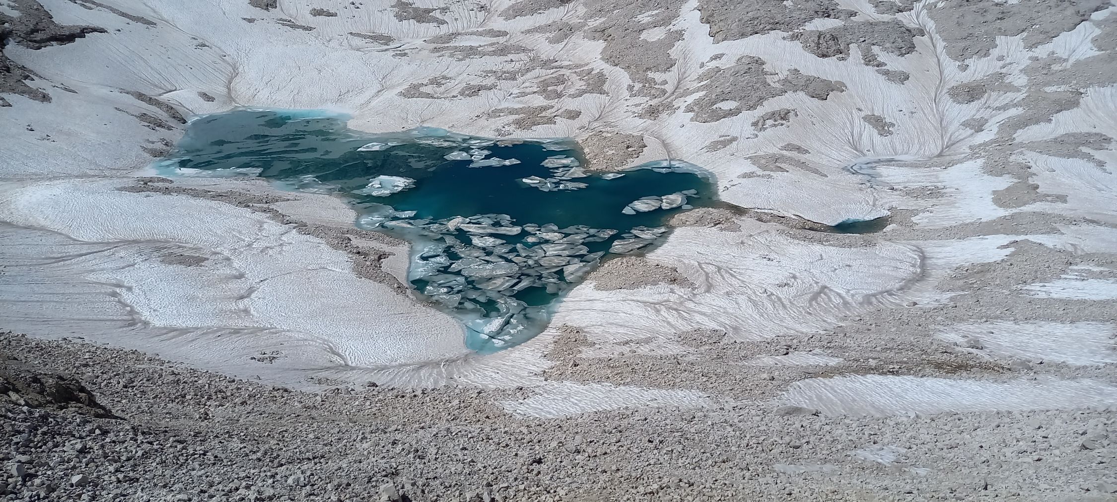 Noch einiges Schnee. Wir habe die Tour beendet durch Absteigen über den Passo delle Lede zum Chalet Piereni