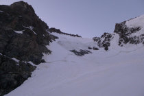 Rutsche aus der Wand sowie +/- aktiver Seracs ( Scerscen und Westwand)