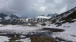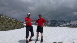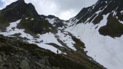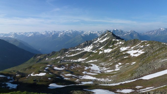 Wir wanderten in einen strahlenden Morgen hinein. Die sich um die Berge bereits bildenden Quellwolken kündigten, wie schon am Vortag, eine labile Wettersituation an. Wir wanderten zügig, hielten aber auch immer wieder gerne Rast, nicht zuletzt, um die fantastische Bergwelt um uns herum in Ruhe in uns aufzunehmen. Ursprünglich hatten wir noch geplant, auf den Valschavieler Maderer aufzusteigen. Die Wetterentwicklung war uns jedoch zu unsicher und wir sahen daher von dem Vorhaben ab. Der gesamte Weg schlängelt sich hoch über dem Montafon dem Valschavieljöchle entgegen. Immer wieder tun sich neue bezaubernde Blicke auf. Anfänglich war nicht viel Schnee im Weg. Das änderte sich im Anstieg auf das Valschavieljöchle und im nachfolgenden Übergang zur Neuen Heilbronner Hütte. Diese erreichten wir rechtzeitig vor dem aufziehenden Gewitter und wir kamen bis auf die etwas nassen Schuhe trocken an. Bei dosendem Donnerregen konnte wir uns geborgen und gemütlich in der Hütte laben und erholen.