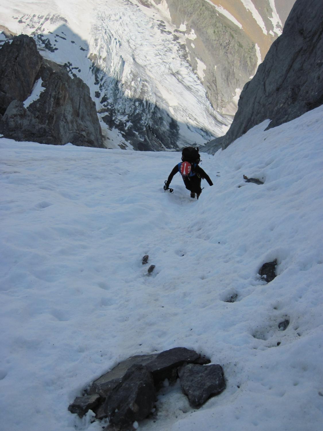 Recht gute Verhältnisse im Akademiker. Einstiegscouloir bzw. Rampe sowie Ausstiegscouloir griffiger Firn.