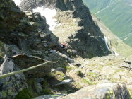 Vom Badus Six Madun zum Oberalppass zeigt sich der unscheinbare Parlet als Schlüsselstelle. Hier im Anstieg anhaltend auf ca. 30 ..40 Meter II.