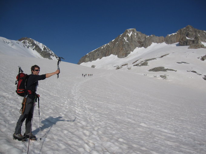 Langer Hatsch den Gletscher hinauf und wieder hinunter durch teilweise weichen Schnee.