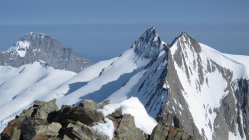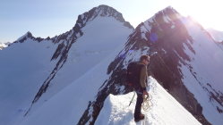 Bester Trittschnee, könnte nicht besser sein ! Praktisch kein Wind. Ganze Tour ohne Kappe und Handschuhe gemacht ! Danach Sonnenschutz-Chäppli im Abstieg und auf dem Gletscher. Mit Ausnahme vom zwei weiteren Bergsteigern keine Leute am Berg. Wir waren ganz alleine oben auf diesem schönen Aussichtsberg.