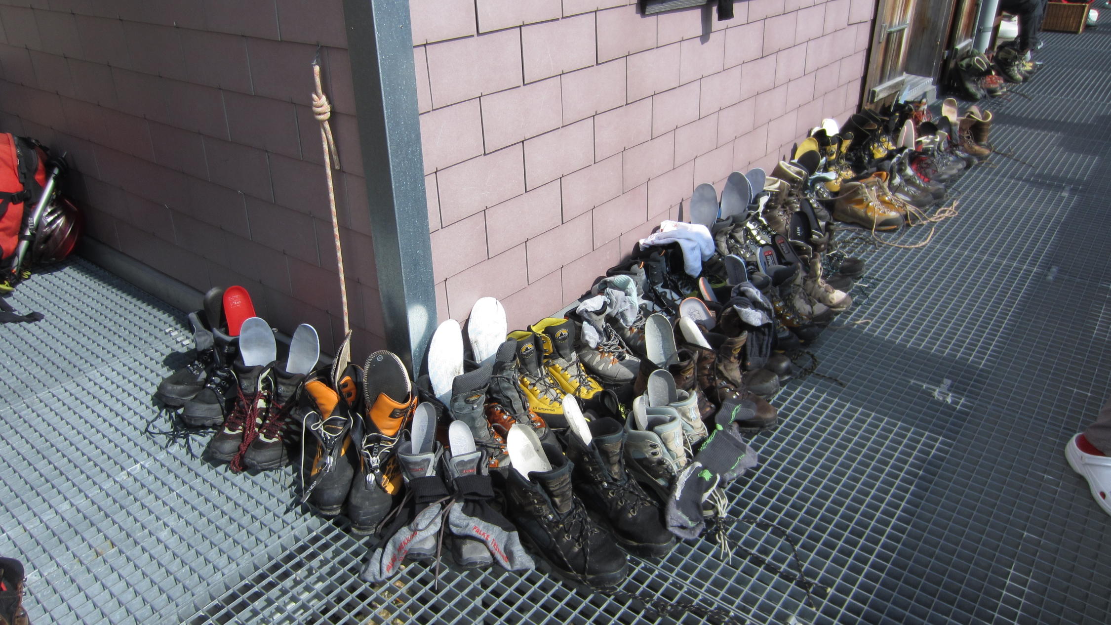 Super Abendessen auf der Konkordiahütte. Die Hütte war komplett voll ! (ca. 150 oder mehr Leute) trotzdem keine Hektik entstanden. Das Hüttenteam hatte alles im Griff ! Frühstück um 3 Uhr nur zu acht ! Viele Gletscher-Trecking-Bergwanderer.
