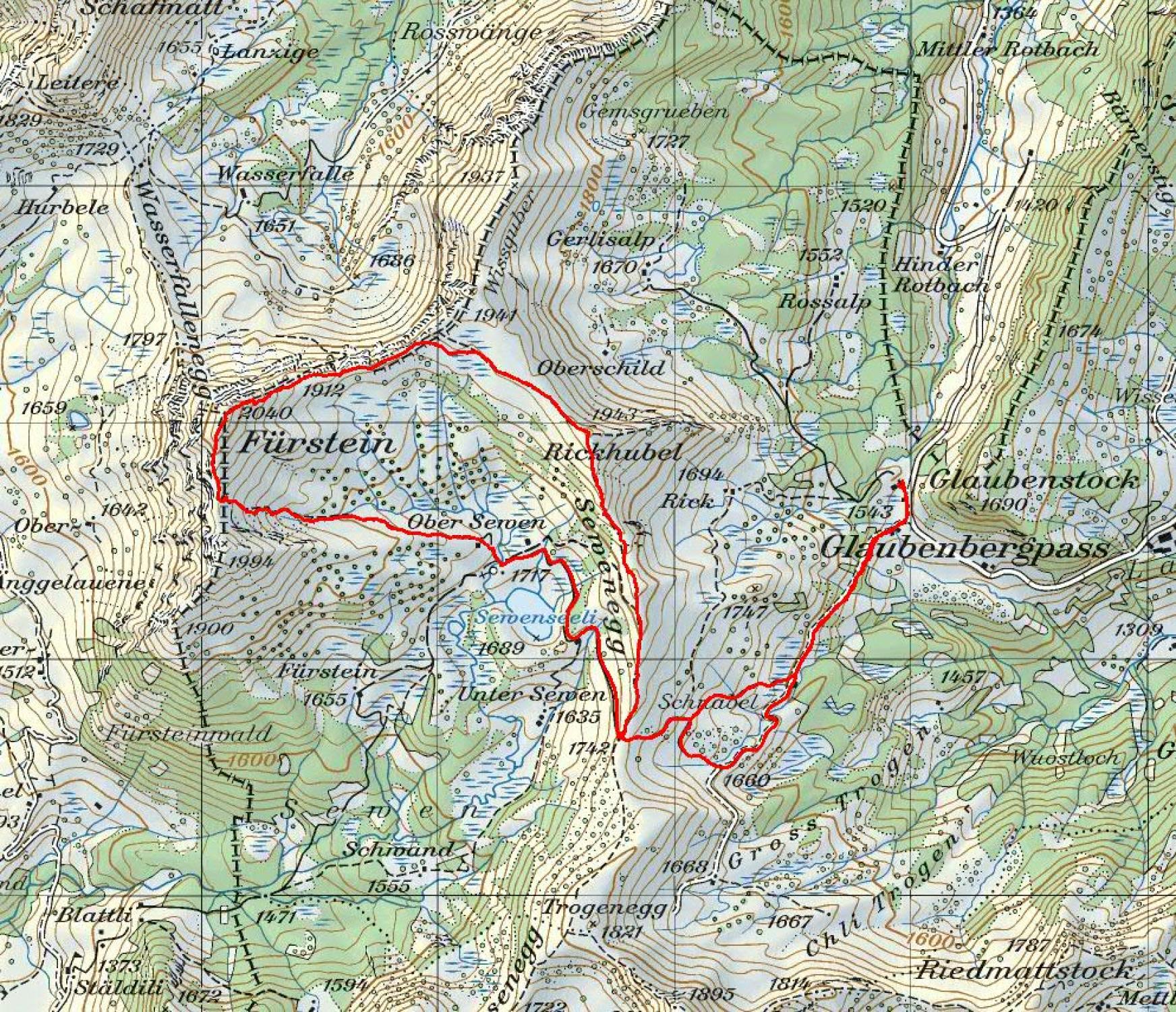 Einfache Runwanderung: Glaubenberg - Rick - Schnabel - Schnabelspitz - Rickhubel - Fürstein - Ober Sewen - Schnabel - Glaubenberg