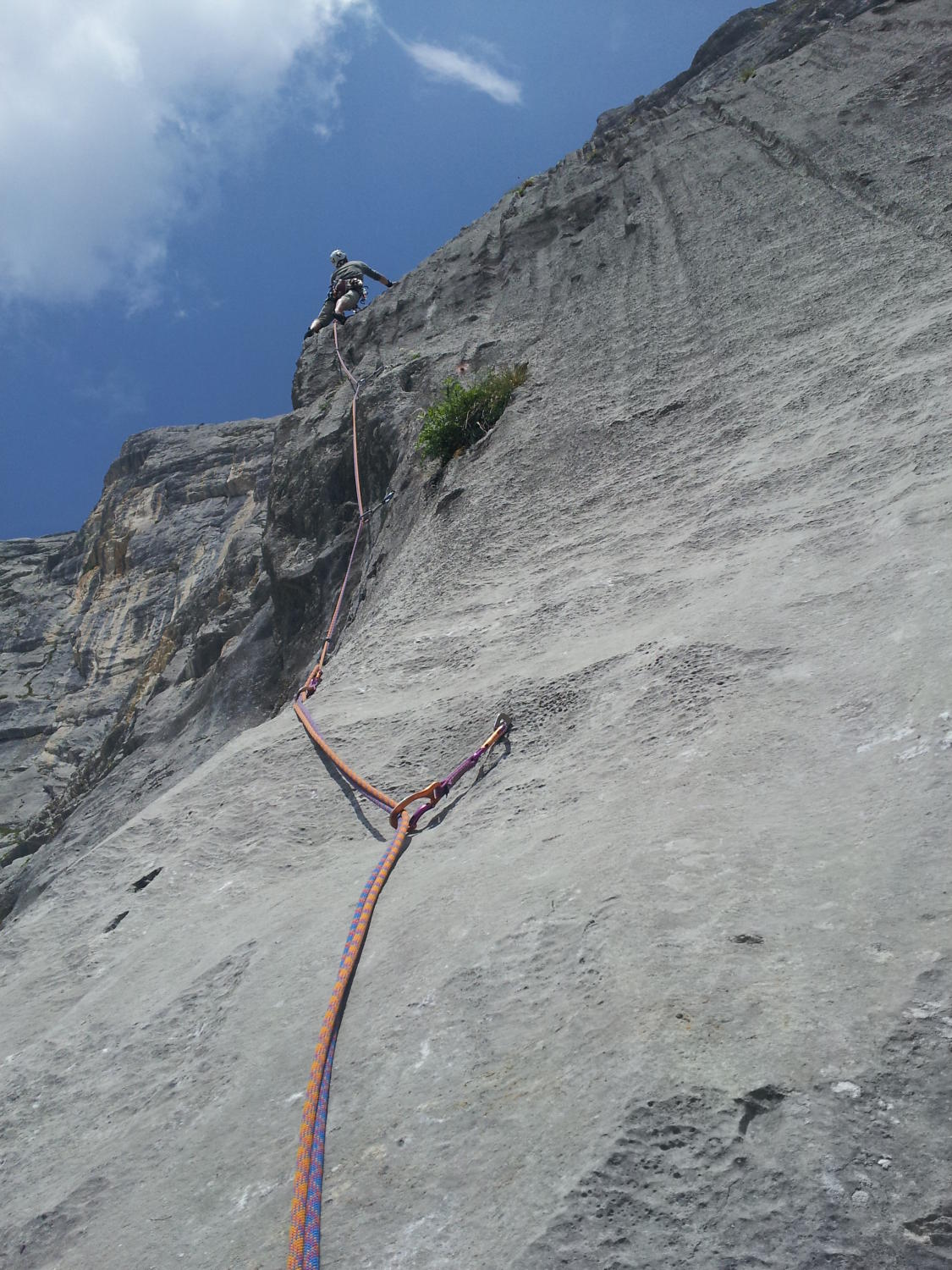 Super Ambiente, aber langer Zustieg. Kletterei war top. Absicherung bis 5. Seillänge ok. Ab 6.Seillänge gilt dev. 6b obligatorisch. Die Route bietet alles. Steile, atletische Kletterei, Wasserrillen und auch anspruchsvolle plattige Kletterei.
