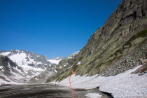 Solange noch Schnee liegt, kann man durch das Couloir runter rutschen beim Abstieg.