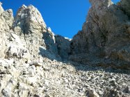 Ich hatte Seil und Sicherungsmittel dabei, aber nie ausgepackt, da keine Haken stecken und die meisten Blöcke sehr scharfkantig sind und ein Seilabzug zu Steinschlag führen würde.