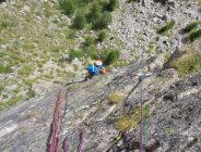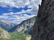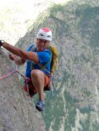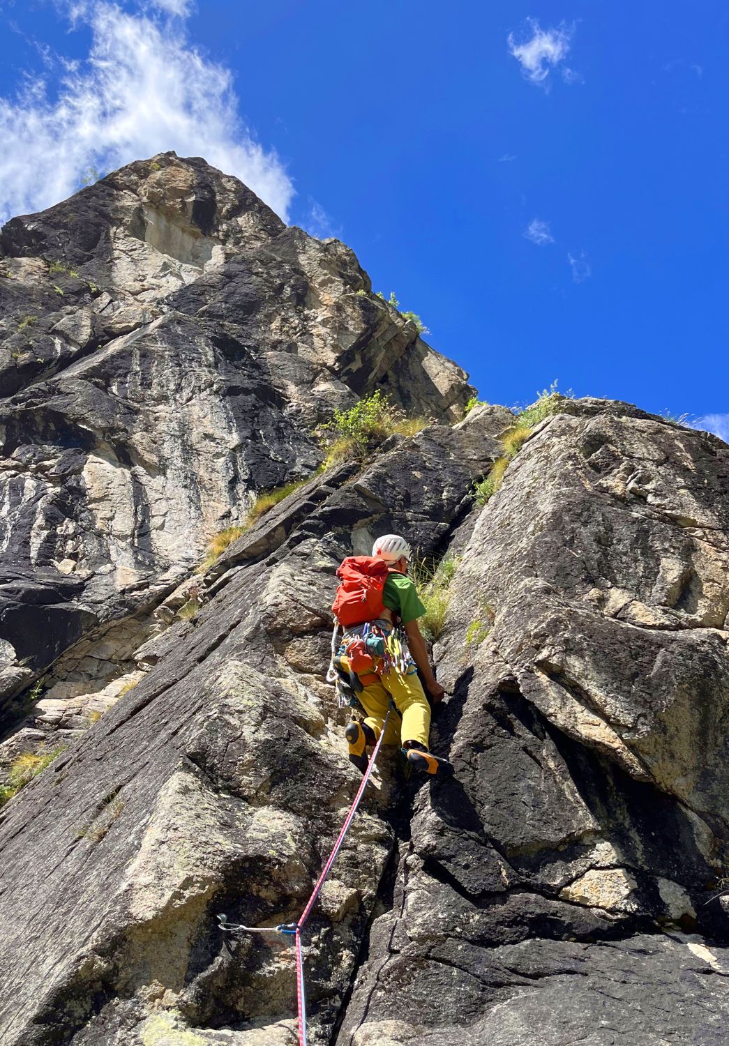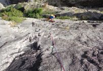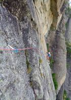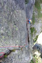 Zunächst etwas am Sektor Fissure (N-seitig) geplant, aber wegen zu vielen Leuten geflüchtet. Daher unklares Topo dabei, und immer irgendwie den Haken nachgestiegen (ergab aber eine gute Kombination)
