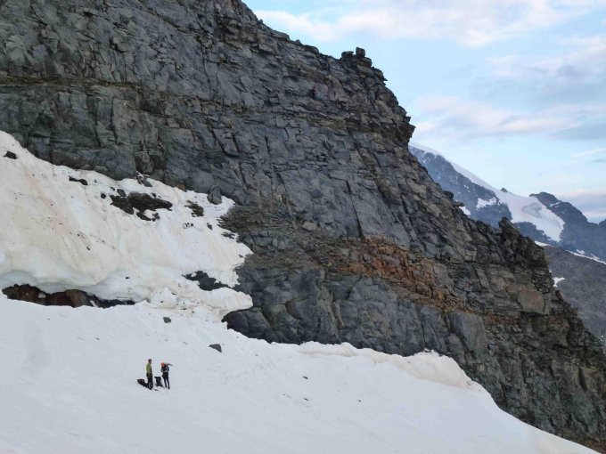 Wetter nicht so gut wie erwartet (und von meteo vorhergesagt). Von abends neun bis morgens drei durchgehend Gewitter mit ordentlich Regen. Biwak feucht-fröhlich. Nur zwei, drei Stunden am Vormittag blauer Himmel, sonst bewölkt.