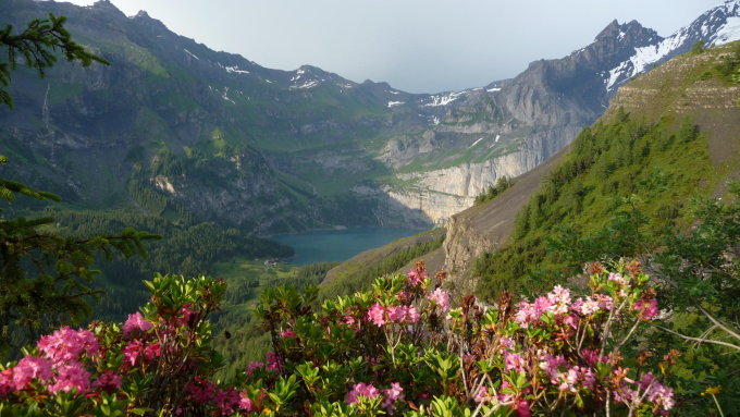 Doldenhornhütte ist herrlich gelegen. Inmitten einer Blumenpracht.