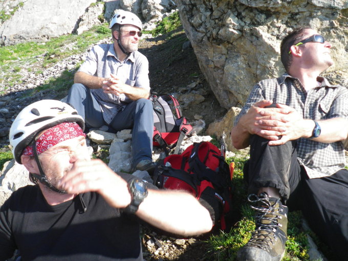 Der Pickel leistete auch im Aufstieg in den Grasplanken gute Dienste. Helm ist Pflicht!