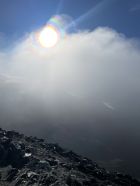 Der Nebel krallte sich am Gipfel fest, jedoch konnte sich nach kurzer Zeit die Sonne durchsetzen und es wurde herrlich warm.
