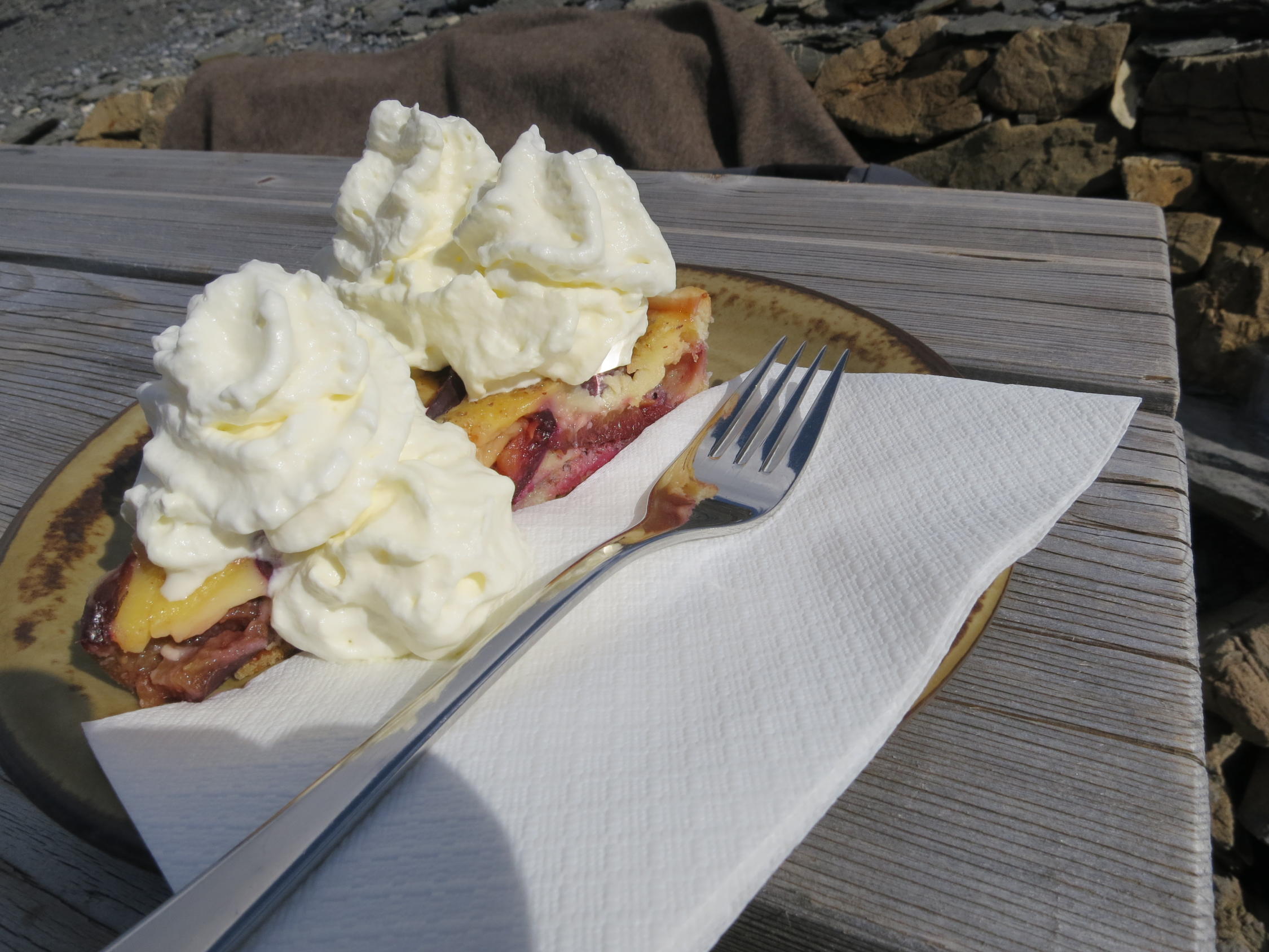 Es gibt feine Rösti, Käseschnitten und Kuchen etc. in der Blümlisalphütte! Ideal um die Speicher wieder aufzufüllen.