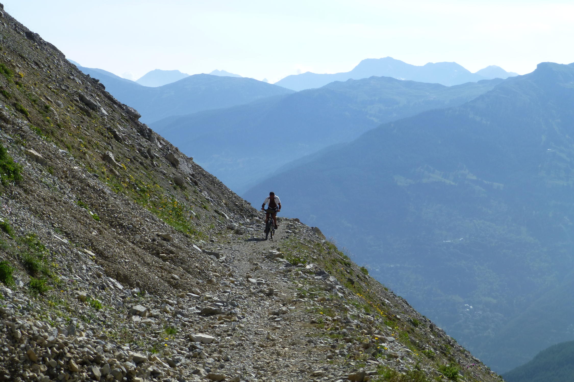 Von Fenils Val di Susa auto etwa 1 stunde von Torino, Gratis park , mit MTB militar strasse 100% MTB bis etwa 1900, dann recht richtung bis MTB/PUSH 30%/70%, uber 2650m MTB/PUSH 80/20%, abstieg gut von Gipfel Bis in Tal
