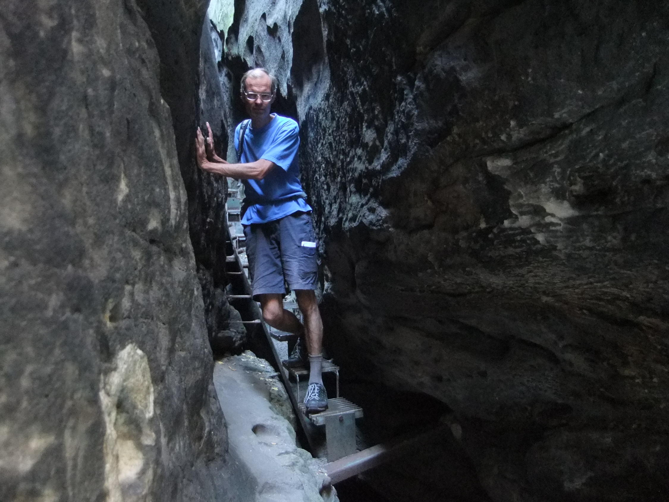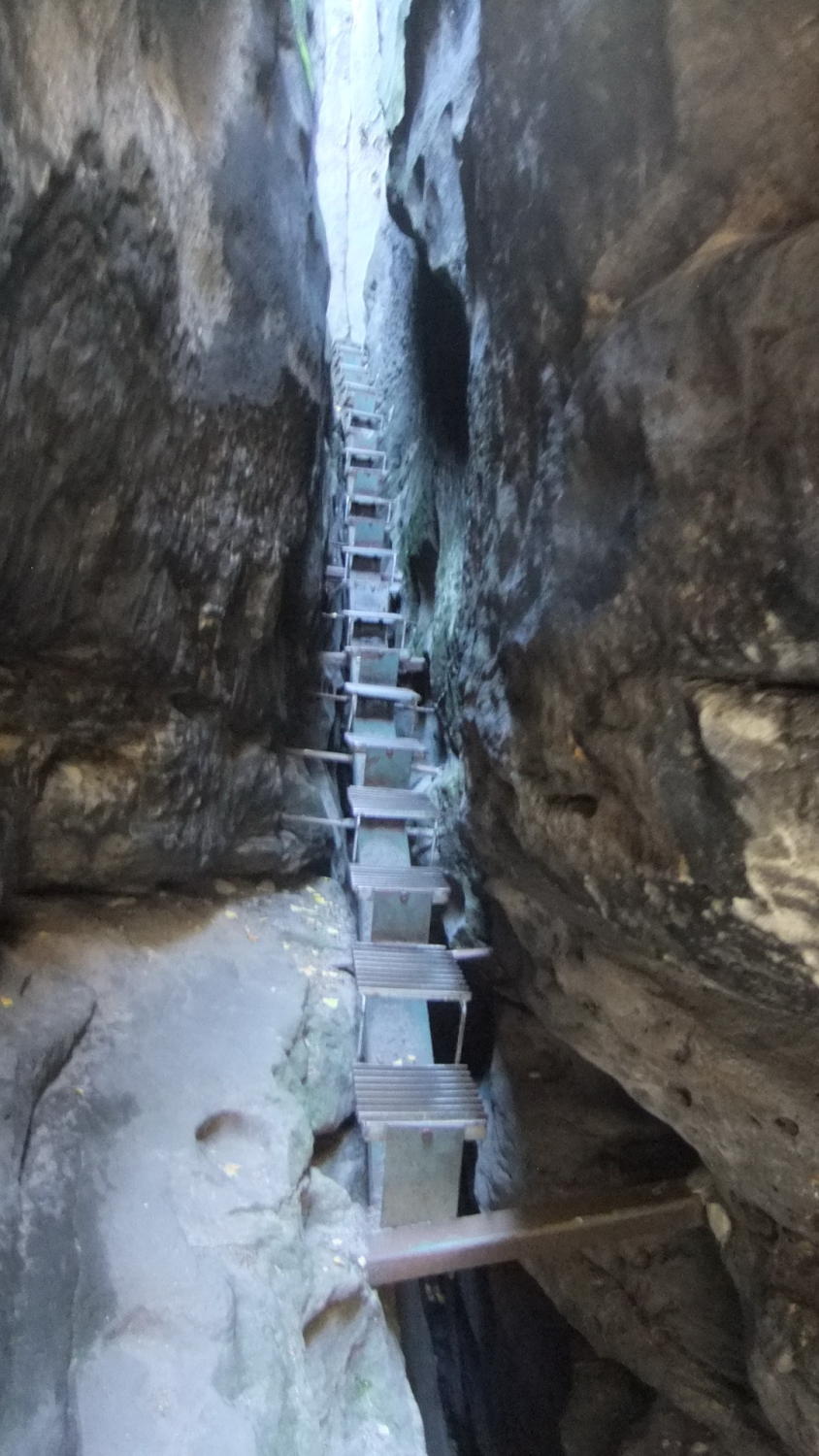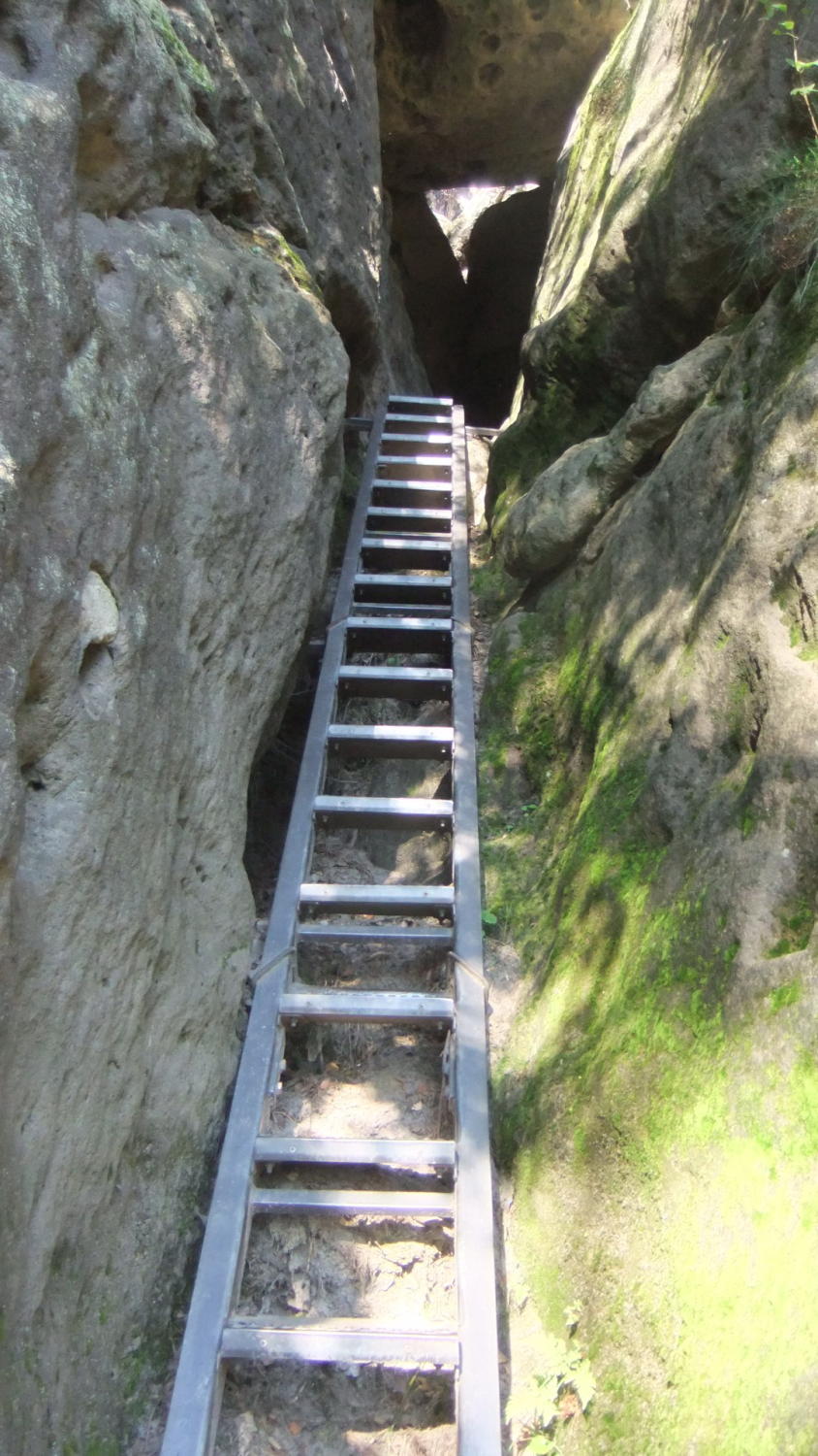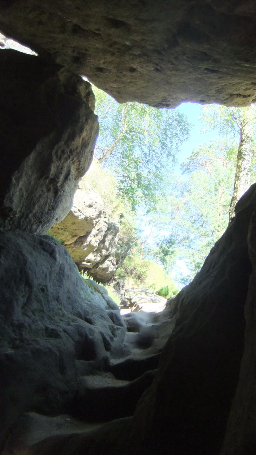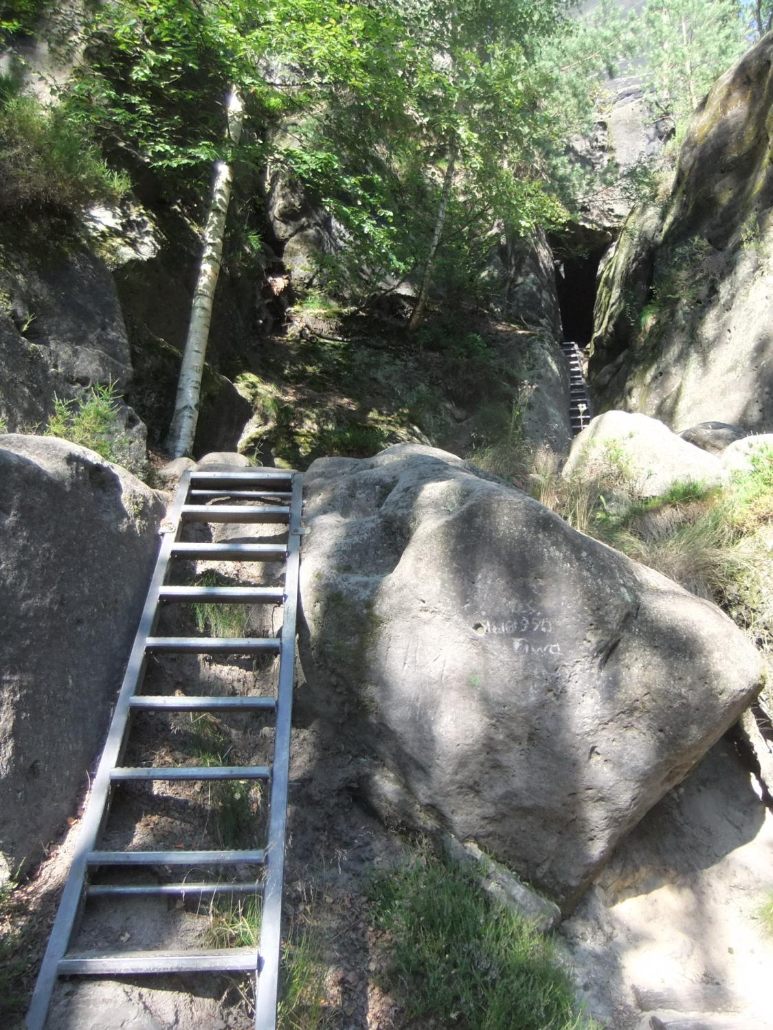 Aussicht auf die nahe liegenden Lorenzsteine im Norden, den großen Zschand im Nordosten, die Hexenspitze und den Bärenfangkegel im Osten, Rübezahlturm und Pilzturm im Südwesten.