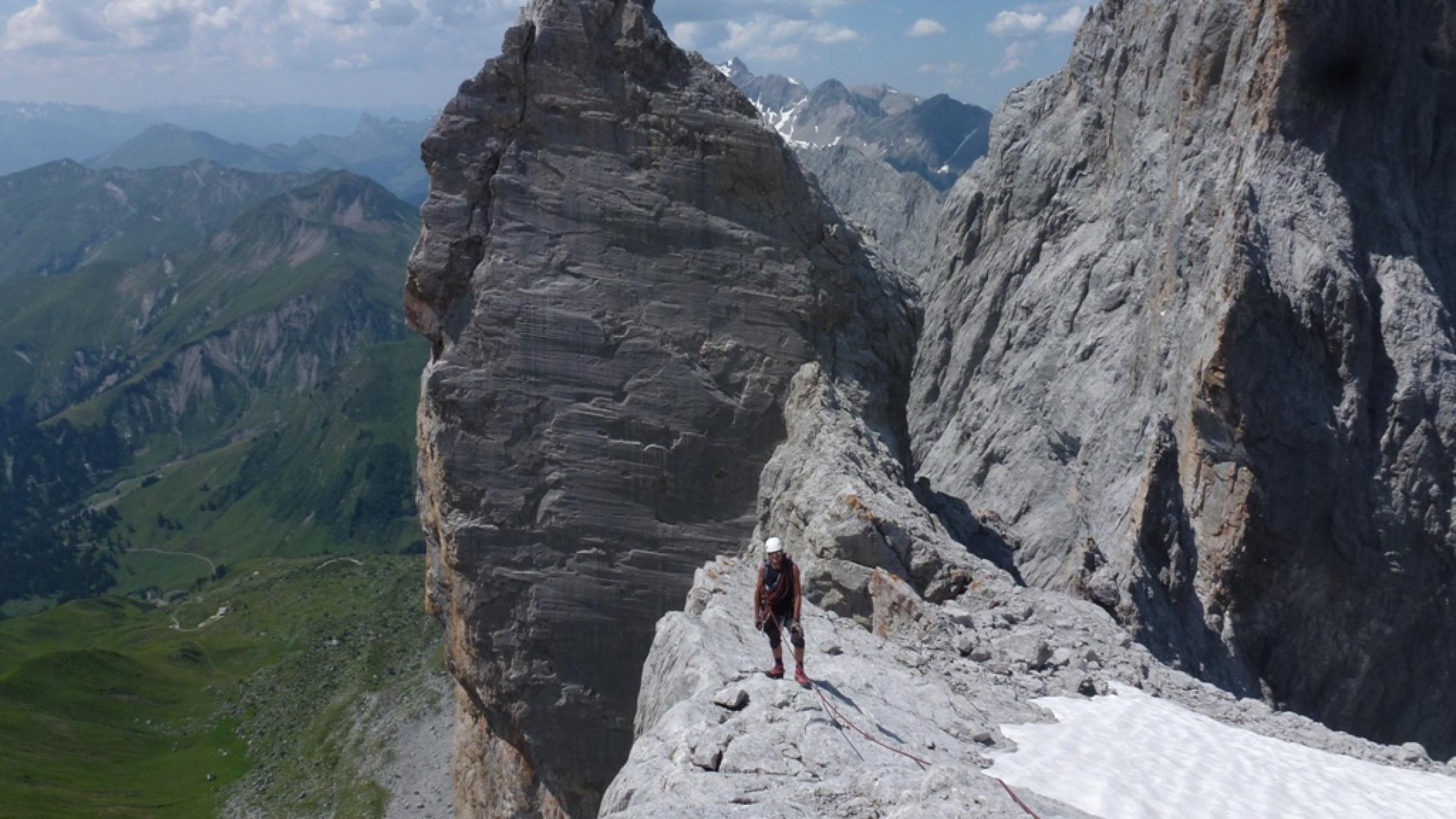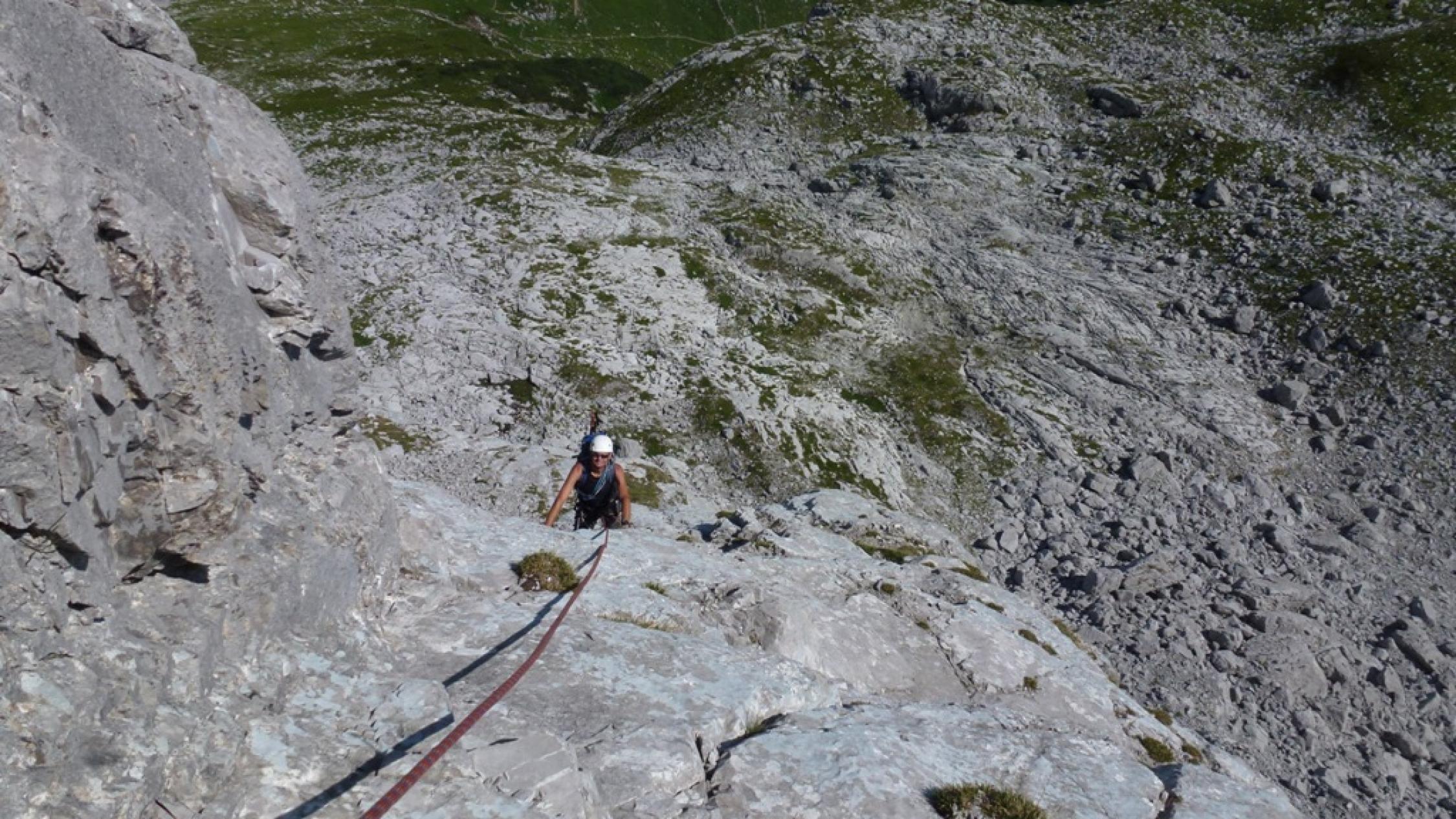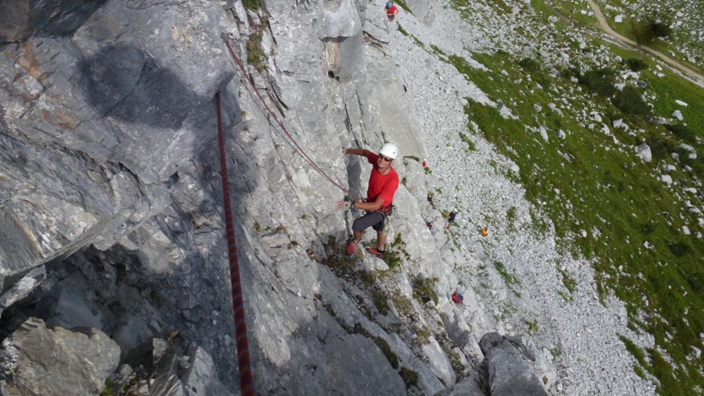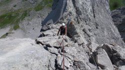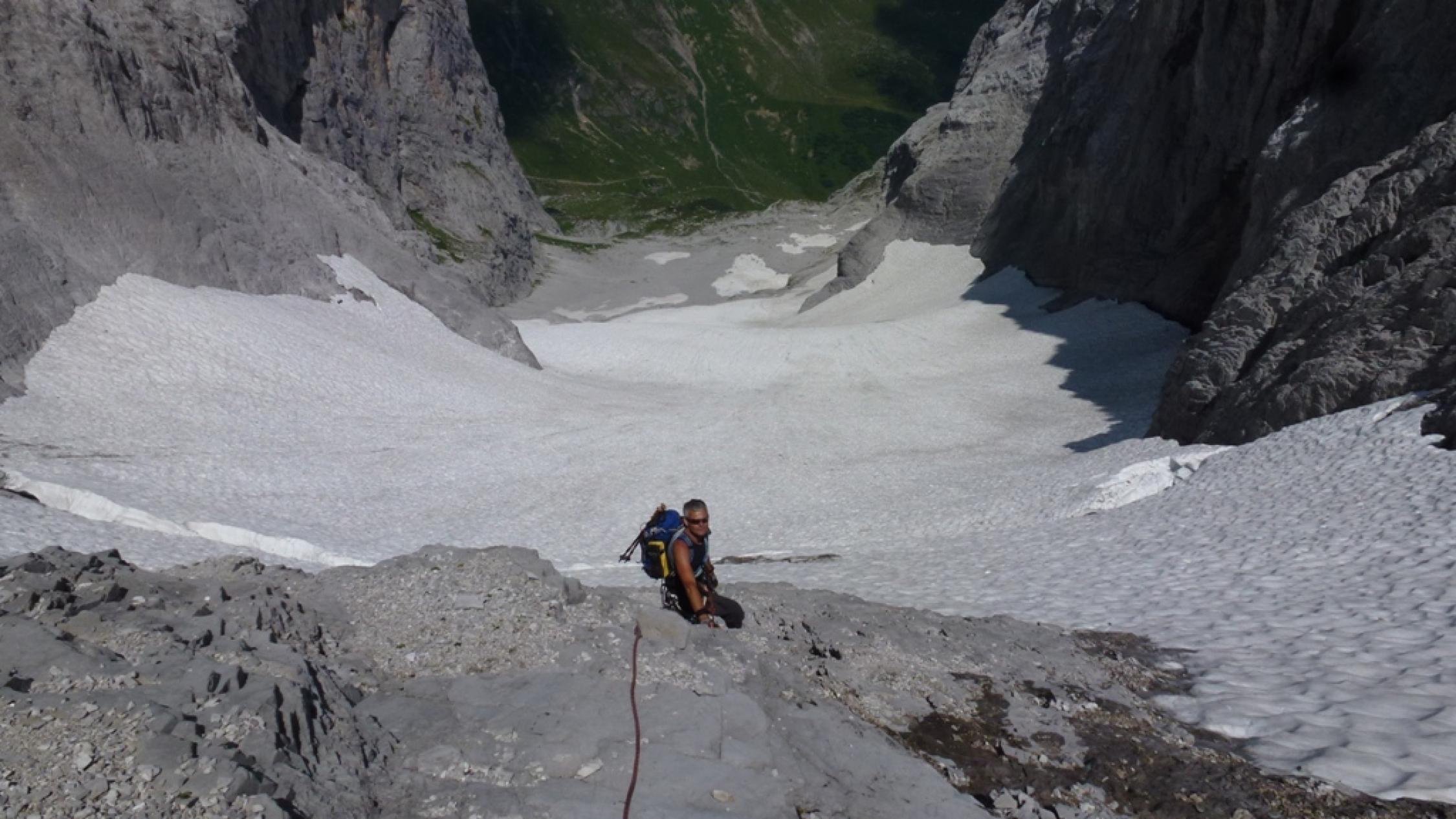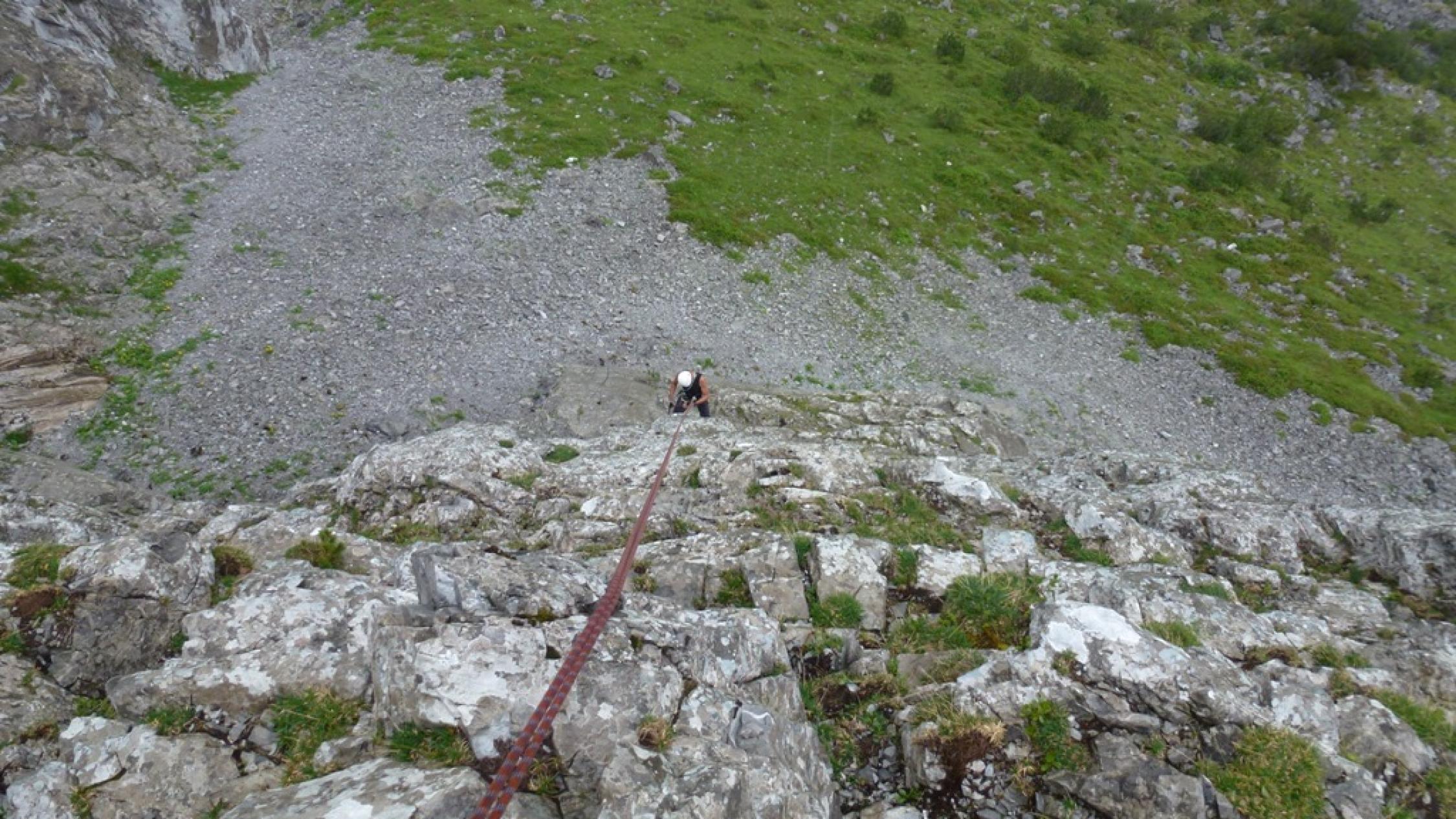 Bei bestem Wetter konnten wird die abwechslungsreiche und spannende Tour gehen. Zuerst versuchten wir uns bei der Gamsfreiheit in der Kletterroute "Nordpfeiler". Diese war uns aber (noch) zu scharf und wir seilten wieder ab.