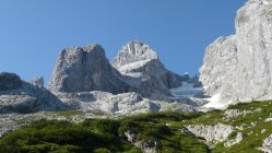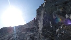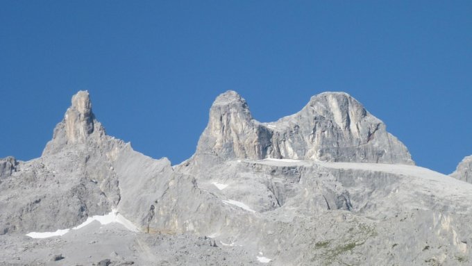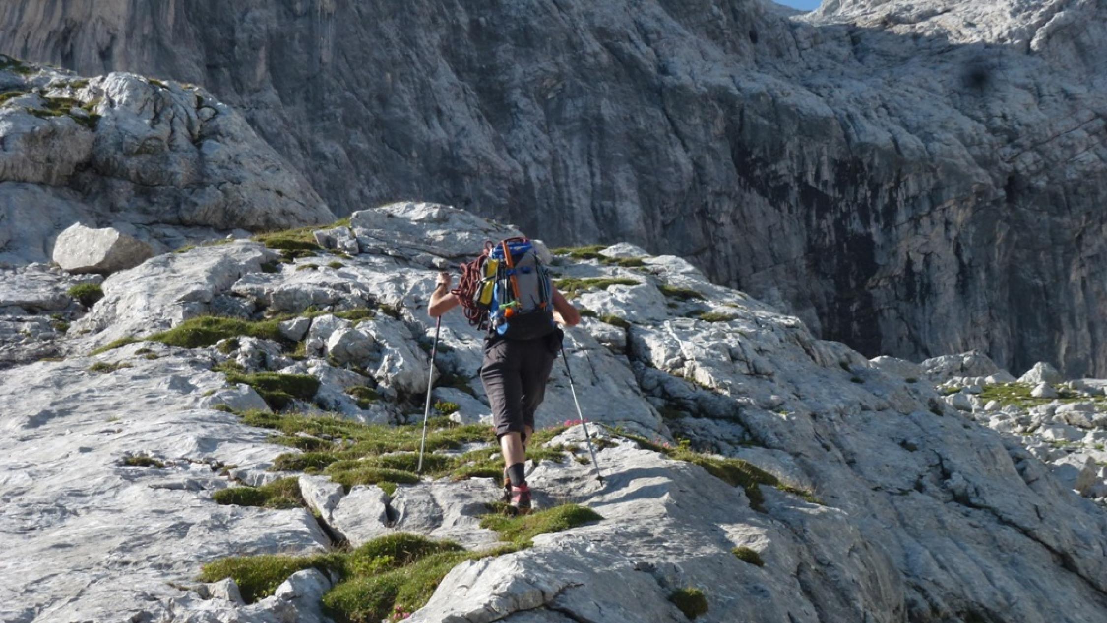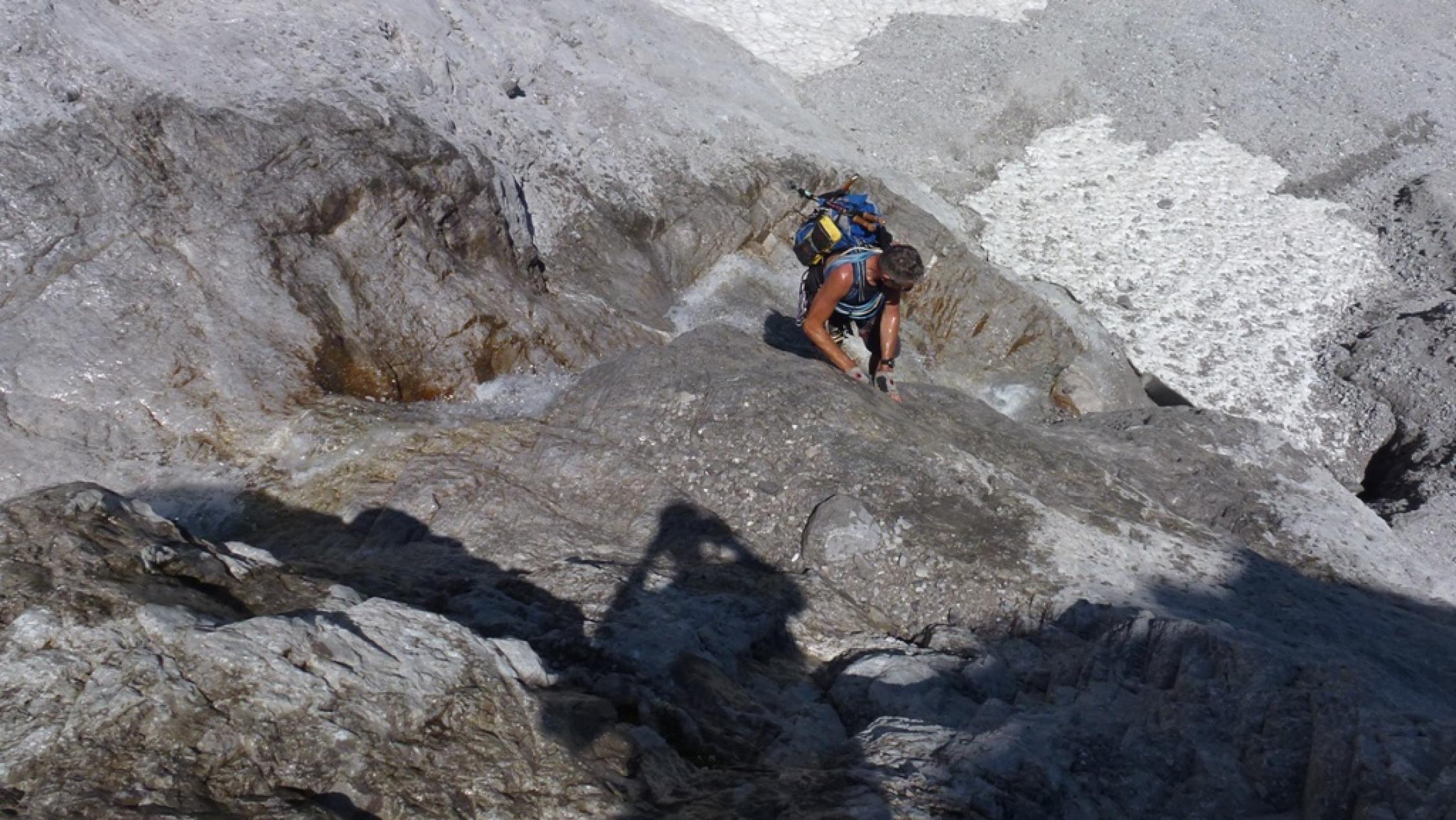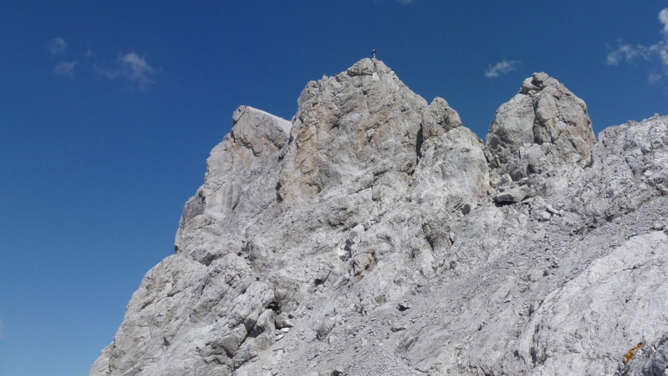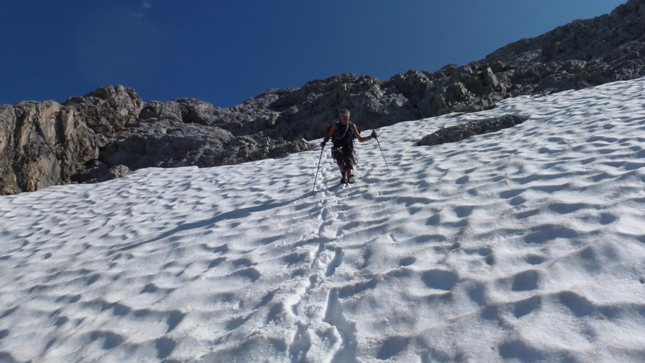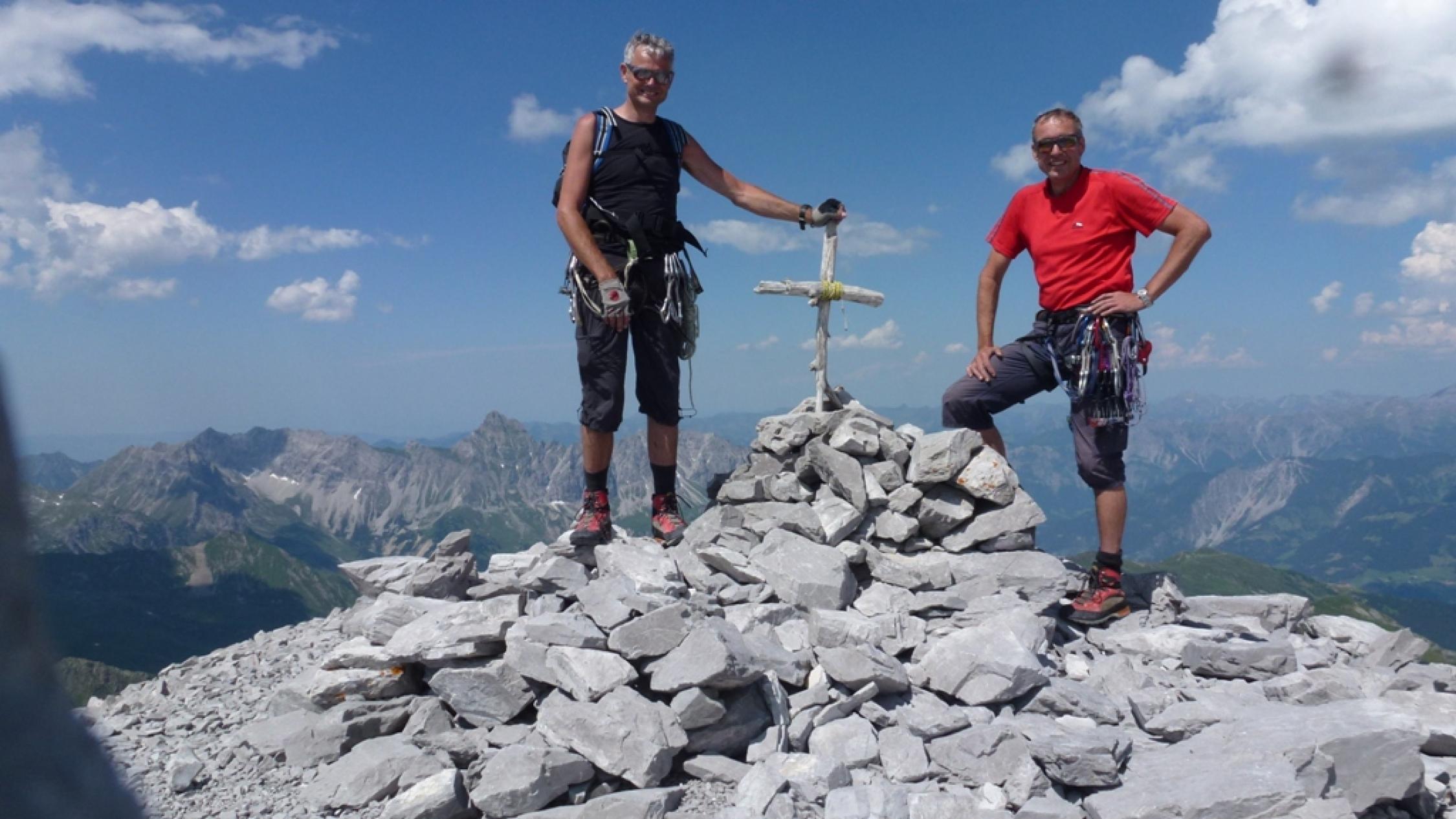 Bei bestem Wetter konnten wird die abwechslungsreiche und spannende Tour gehen. Zuerst versuchten wir uns bei der Gamsfreiheit in der Kletterroute "Nordpfeiler". Diese war uns aber (noch) zu scharf und wir seilten wieder ab.