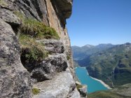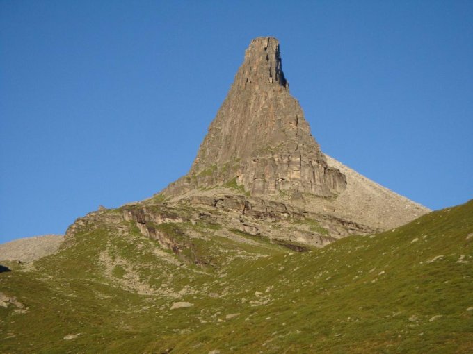 Von der Chappella, oberhalb des Zervreilasee, zuerst auf guter Kiesstrasse mit dem Bike zur Brücke hinab und dann noch etwas weiter bis zu den Wegweisern. Sehr angenehm, wenn man früh am Morgen, statt eines mühsamen "See entlang Gelatsche" eine Bikeabfahrt geniessen kann. Danach weiter zu Fuss auf dem Wanderweg bis unter das Horn hoch. Gute Bike & Hike Kombination, so in lockeren 1.5h zum Einstieg.