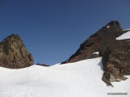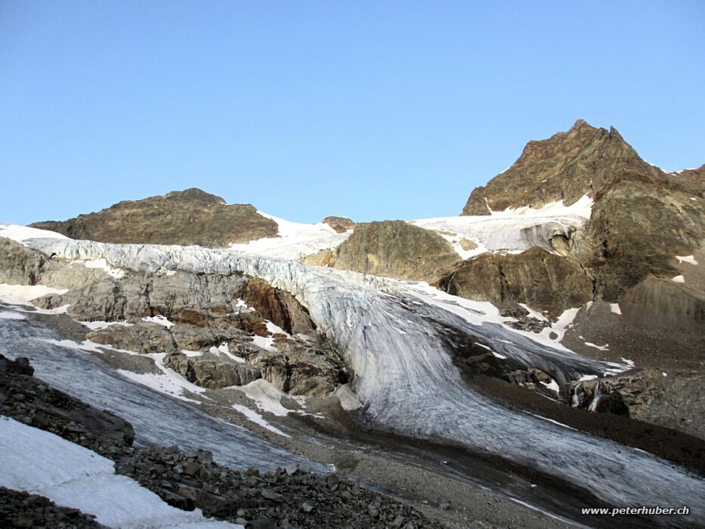 Sehr schönes Wetter, sehr warm. Das Blankeis war schon morgens früh weich - angenehm für die Steigeisen. Der Firnschnee ist stark durchfeuchtet. Auf dem Ochsengletscher kommen darunter bis verdeckte neue Spalten zum Vorschein. (Alleingänger leben gefährlich)
